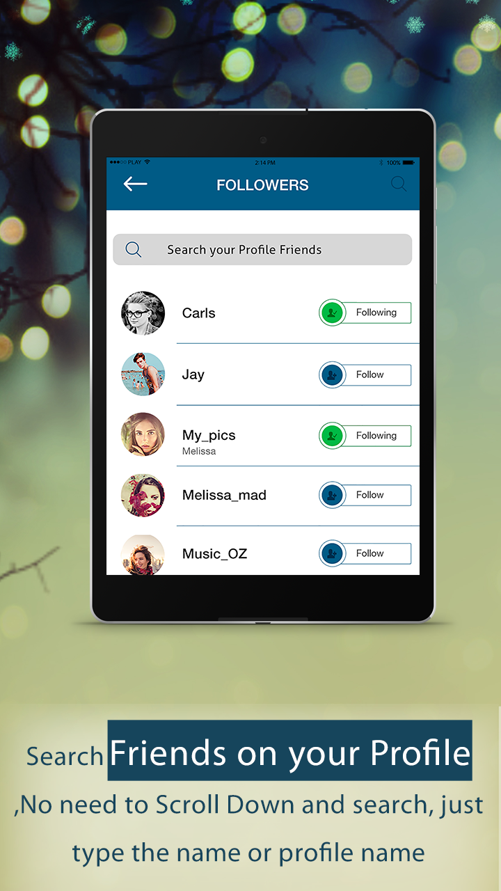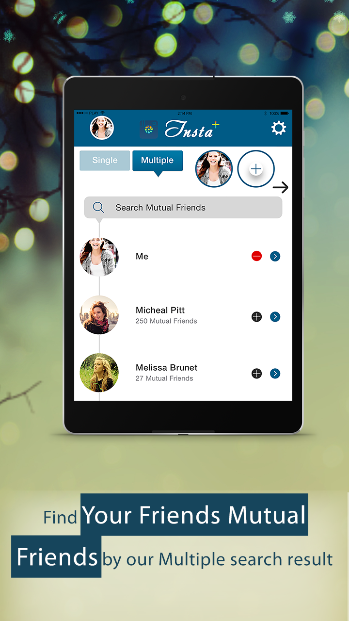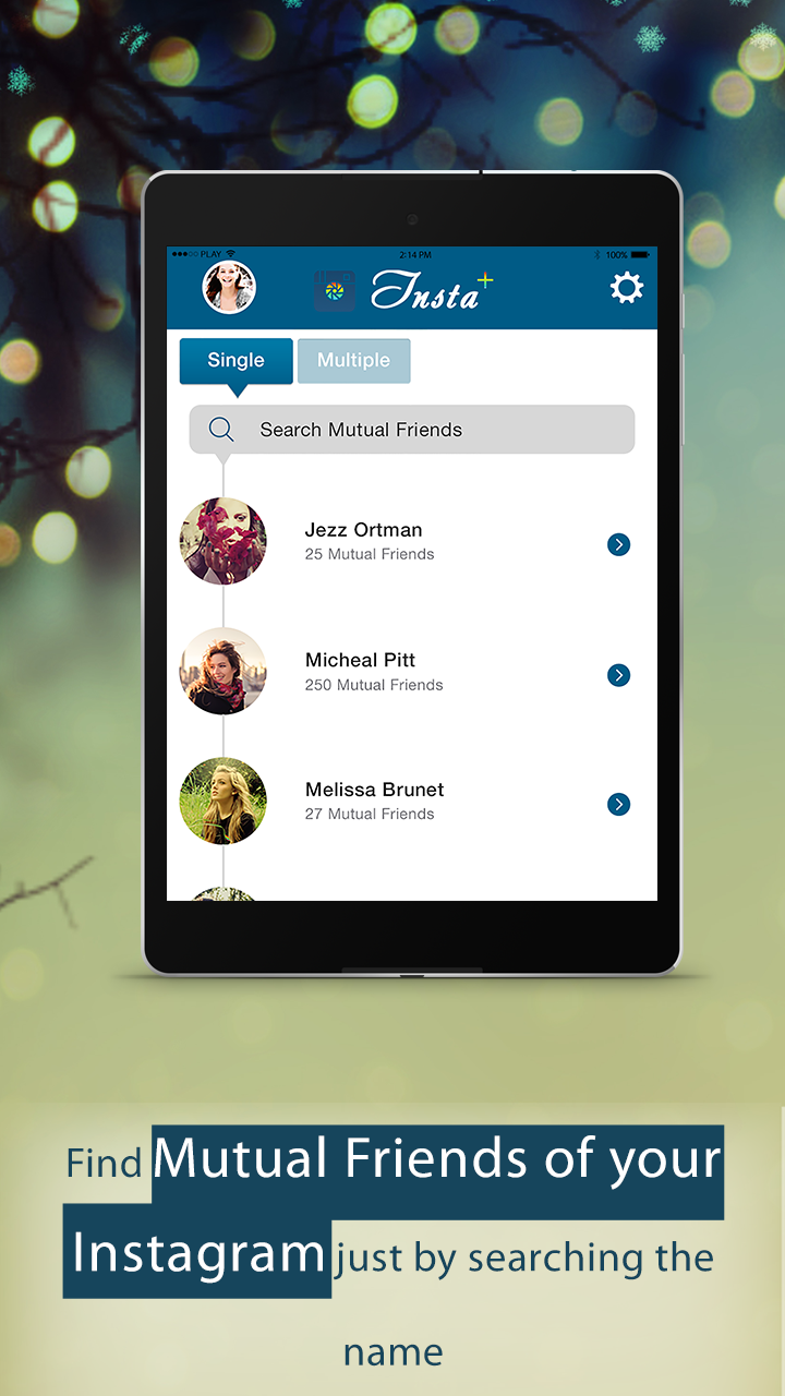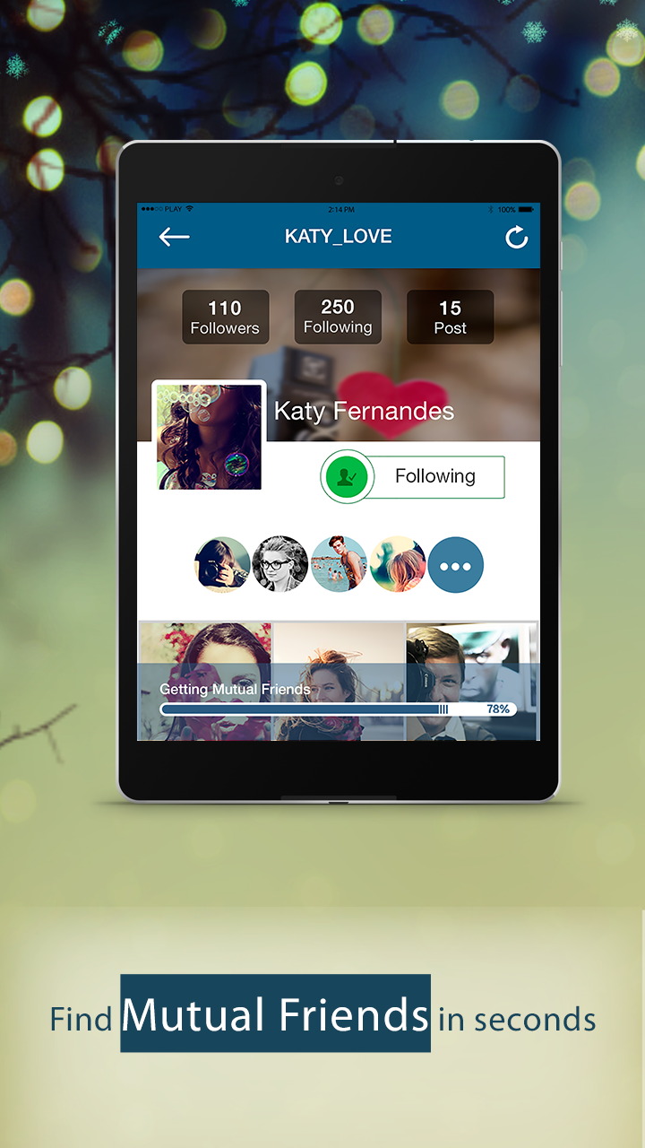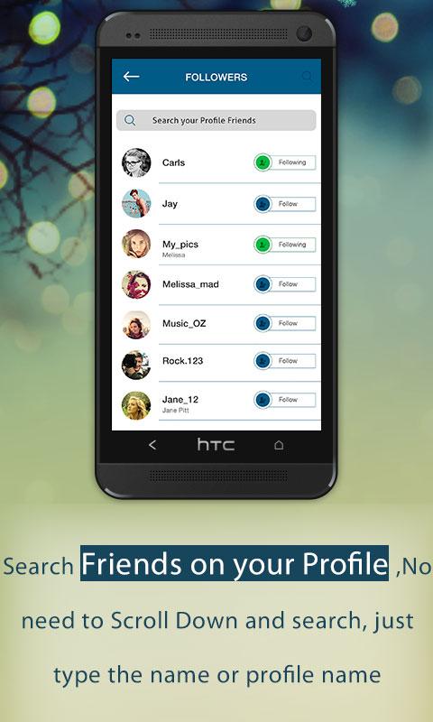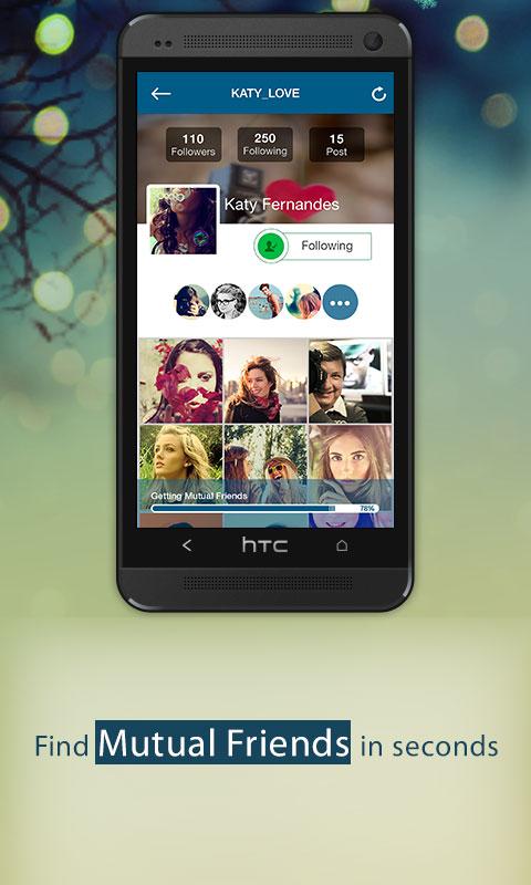 You should have to have an Instagram account to login. The main unique feature of this App is that you can see the mutual followers or mutual following for instagram or All of any public profile, It is surely a very fascinating feature to know the mutual friends of any person , Who doesn't like to know common friends of any profile? Everyone likes it! Well, Another interesting feature is that you can see a list of likes of your own profile. Which means you can see how many, when and which updates you liked. Apart from these, you can carry on all the activities you used to do on. Truly a great idea. Isn't it! So what are you waiting for? Install App and enjoy the distinctive features.