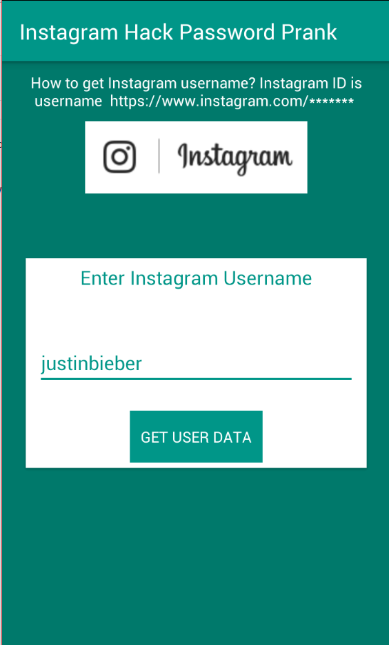 Be a real hacker and hack your friends instagram How to use app : • Free download our app from play store • Enter valid id of that account which you want to hack. • How to get Instagram username? Instagram ID is username https://www.instagram.com/******* • Now press hack button and wait for some second to get password id. • Have fun!