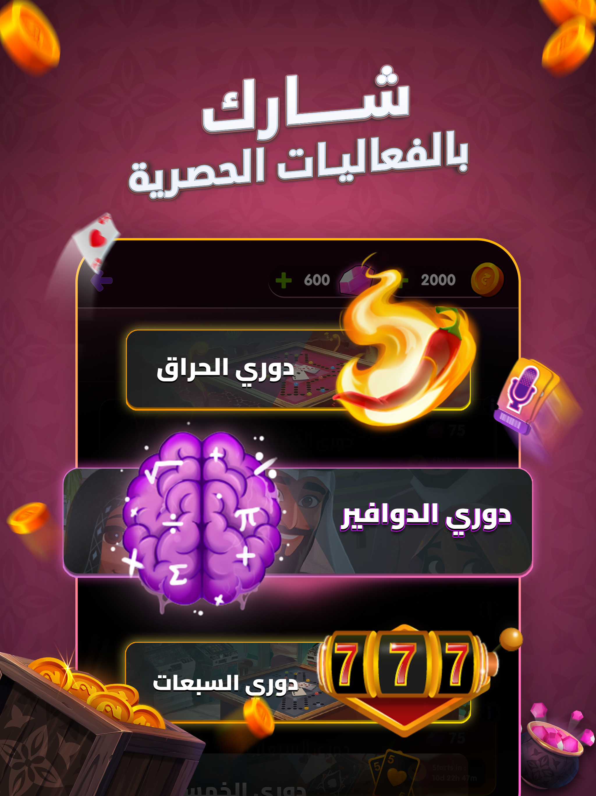 أهلاً بك في الديوانية! ☕ وصلت "الديوانيات" الجديدة! الآن صار بإمكانك إنشاء ديوانيتك الخاصة وجمع أصحابك للدردشة واللعب في مكان واحد. تعاون مع أعضاء ديوانيتك لإنجاز مهمات حصرية والارتقاء بمستوى مجموعتكم معاً! لقد قمنا ببعض التعديلات وتحسين واجهة المستخدم لضمان تجربة لعب أكثر سلاسة. كن أول من يجربها—لحق الديوانيات الجديدة الآن! 🏆