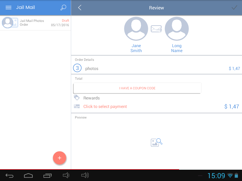 - Easily create a postcard and send for those jails that don’t allow regular correspondence.
