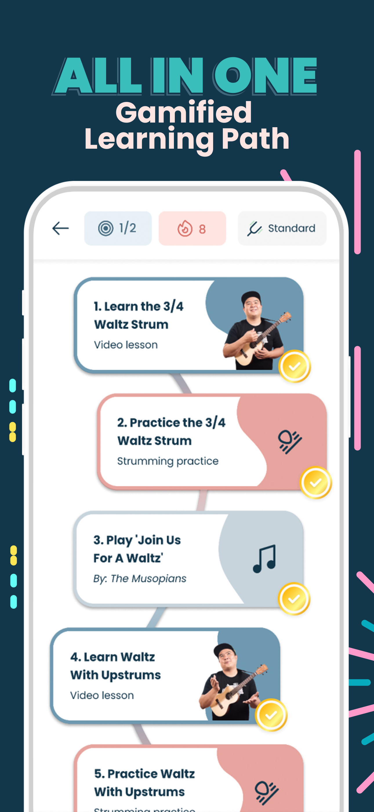 🎯 重要なサブスクリプション情報:MusopiaのウクレレレッスンとKalaウクレレチューナーアプリでは、プレミアムソングカタログと新曲リリースに無制限にアクセスできる1ヶ月と1年間のフルアクセスサブスクリプションを提供しています。