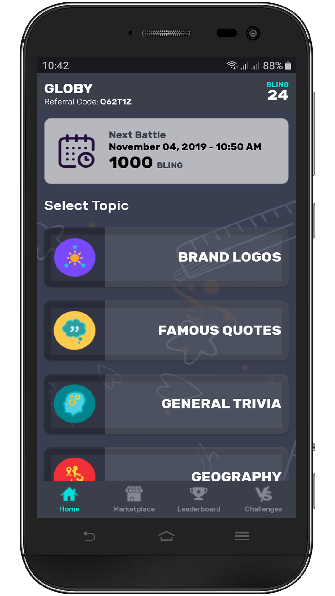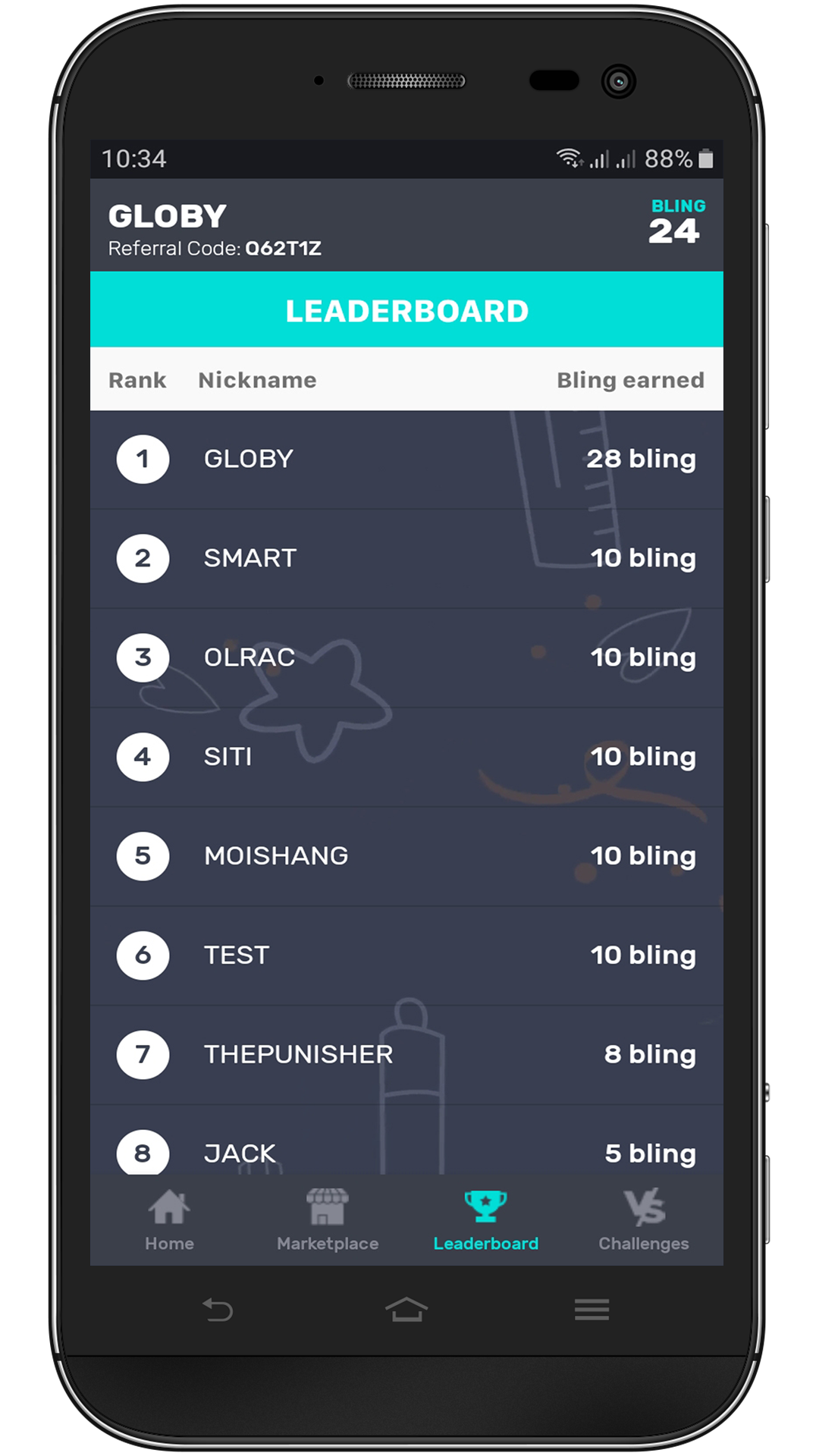 Users may exchange their bling in availing various items available in the Kweez Marketplace.