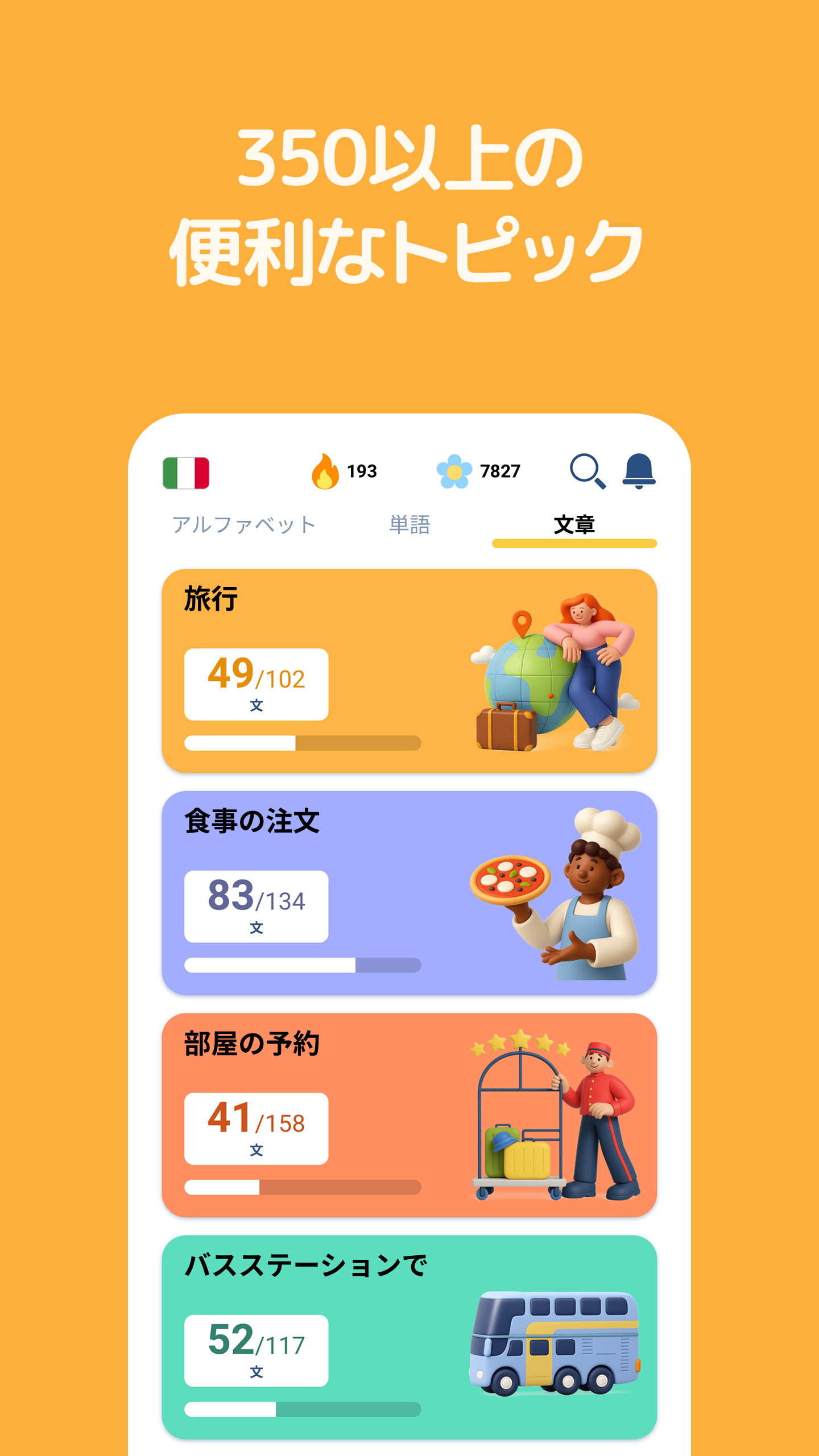 イタリア会話を学習 - 6,000 単語・5,000 文章