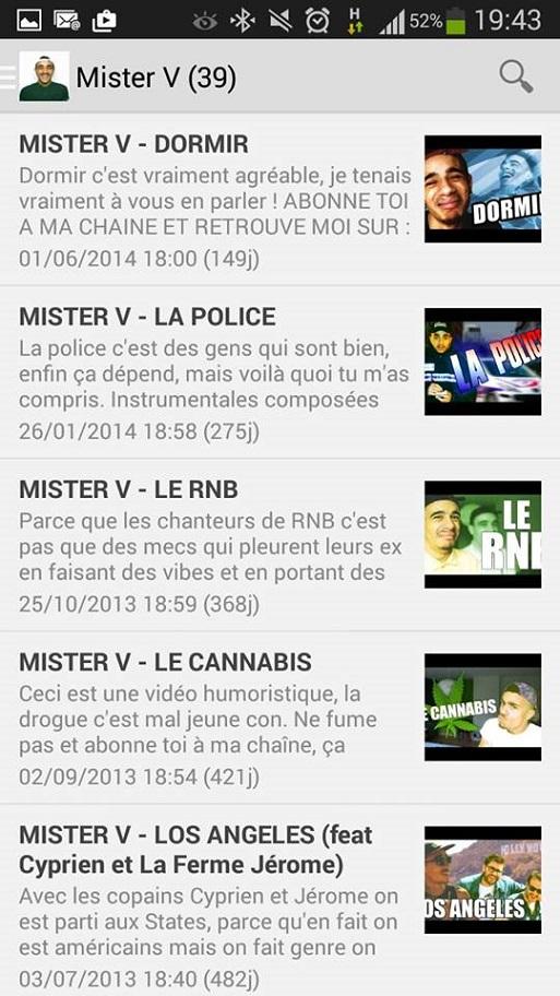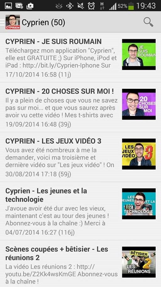 Retrouver chaque semaine les vidéos de vos meilleurs YouTubers français tout cela en une seule application. Retrouver toutes les stars de YouTube français et plus Retrouver les derniers actu de Cyprien , NORMAN, SQUEEZIE, Mister V, Hugo Tout Seul, La Ferme Jerome, Golden Moustache, Studio Bagel, Palmashow, Mr Antoine Daniel, Seb la Frite, Langue de Pub, Rémi GAILLARD,Léris Luketo et Bien plus!!!