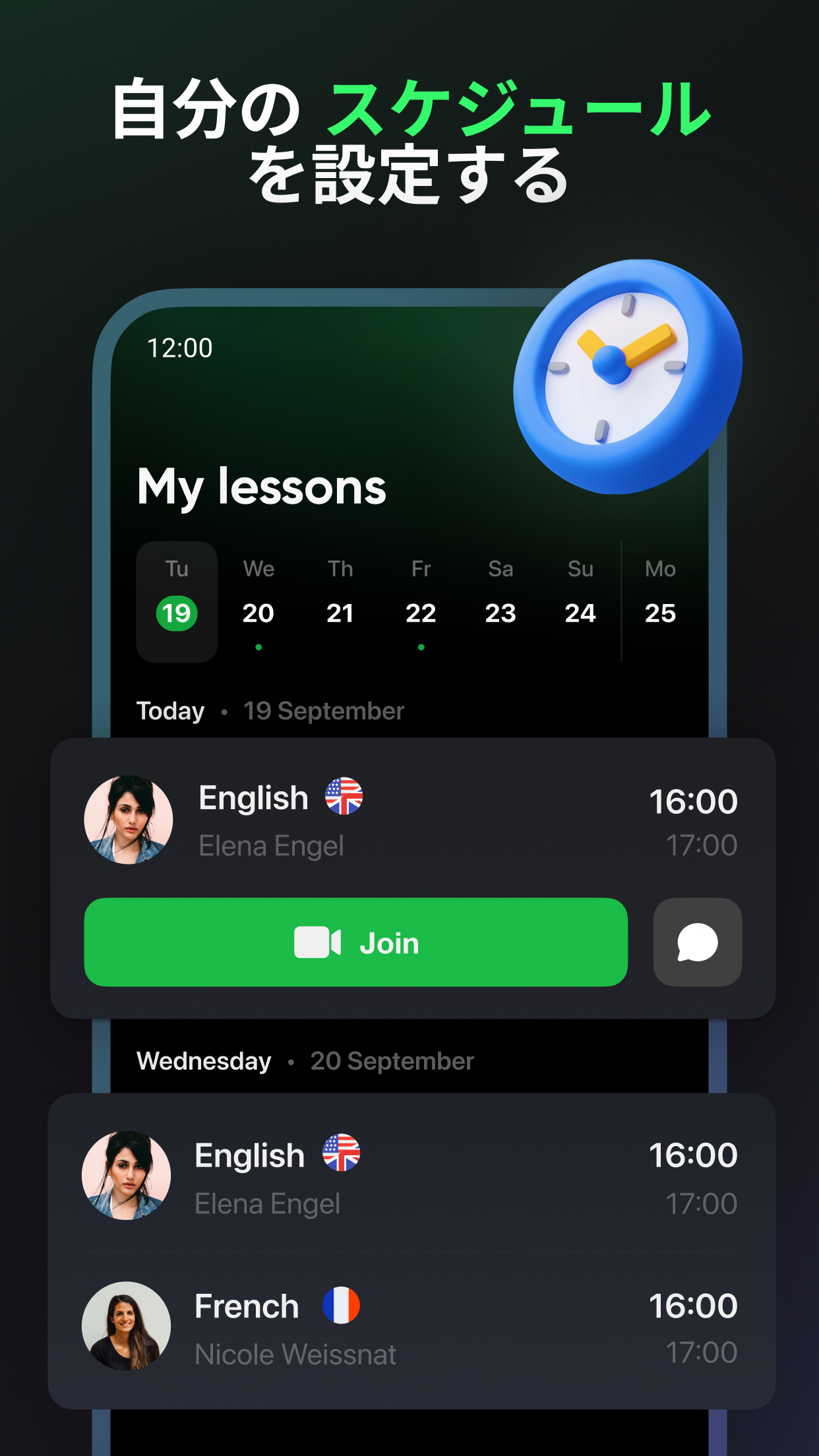 Introducing Personalized Learning Path for English Learners! Create your own tailored program directly in the app. Achieve your goals with customized lessons based on your level, goals, learning pace, and interests. Enjoy 1-on-1 sessions with a tutor and engaging self-study exercises to level up your language skills. Start your journey right now!