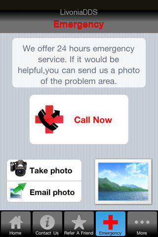The app is provided by Livonia Dental Care. It is for patients to use to easily contact the office, request an appointment, or request emergency treatment (and include a photo of the problem area if appropriate). It has info about the dentist, a picture gallery, and other important info about the dental office. You can even refer your friends! We hope you enjoy it and it enhances the service we provide to our patients.