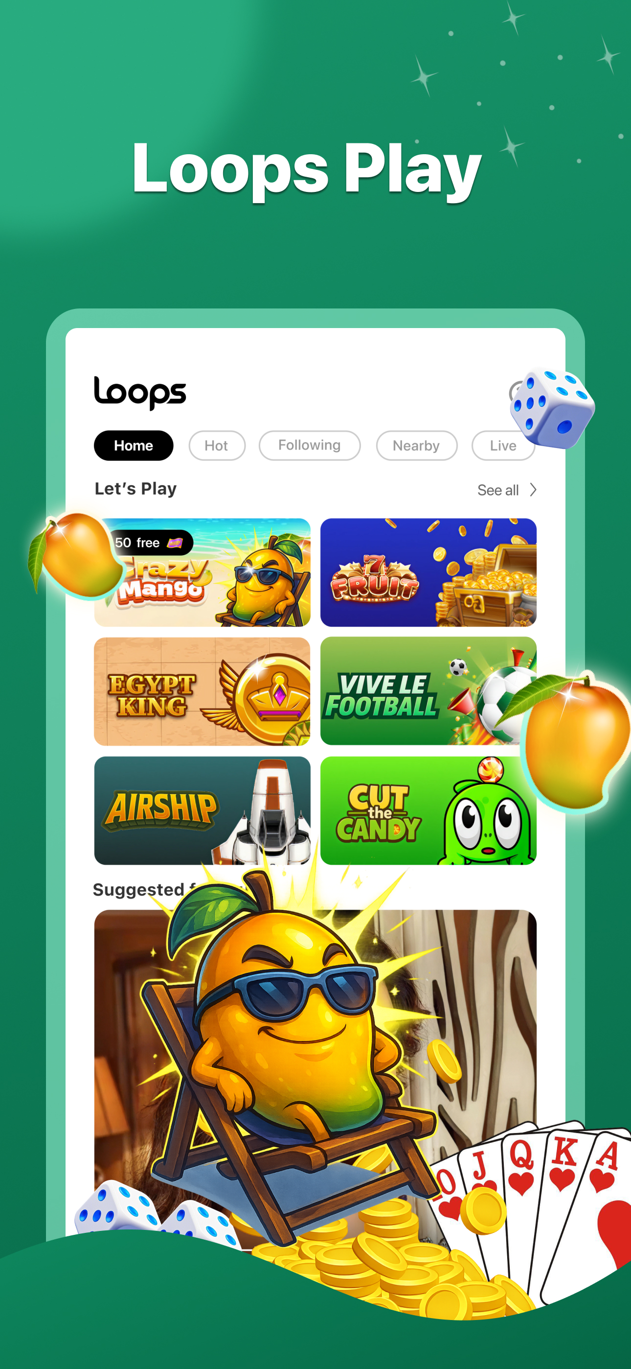 Welcome LOOPS Play. Welcome to LOOPS Play! Connect, communicate, and interact with like-minded individuals as you embark on a thrilling journey filled with luck and endless fun games. *Live Stream* Connect with individuals around the world and enjoy real-time interactions. *PK Function* Showcase your talents, compete with your friends and other hosts! *Lucky Games* Get ready for non-stop fun wiht our lucky games designed for community! *Amazing Events* Participate in various fun events and rank top on leadboards! Why wait? Download now and unlock a world of endless fun! - Terms of Service: https://www.loopslive.com/web-loops/ subscription-term/index.html - Privacy Policy: https://www.loopslive.com/#/app/privacy-policy Website: https://www.loopslive.com Thanks for using LOOPS Play and enjoy Looping!