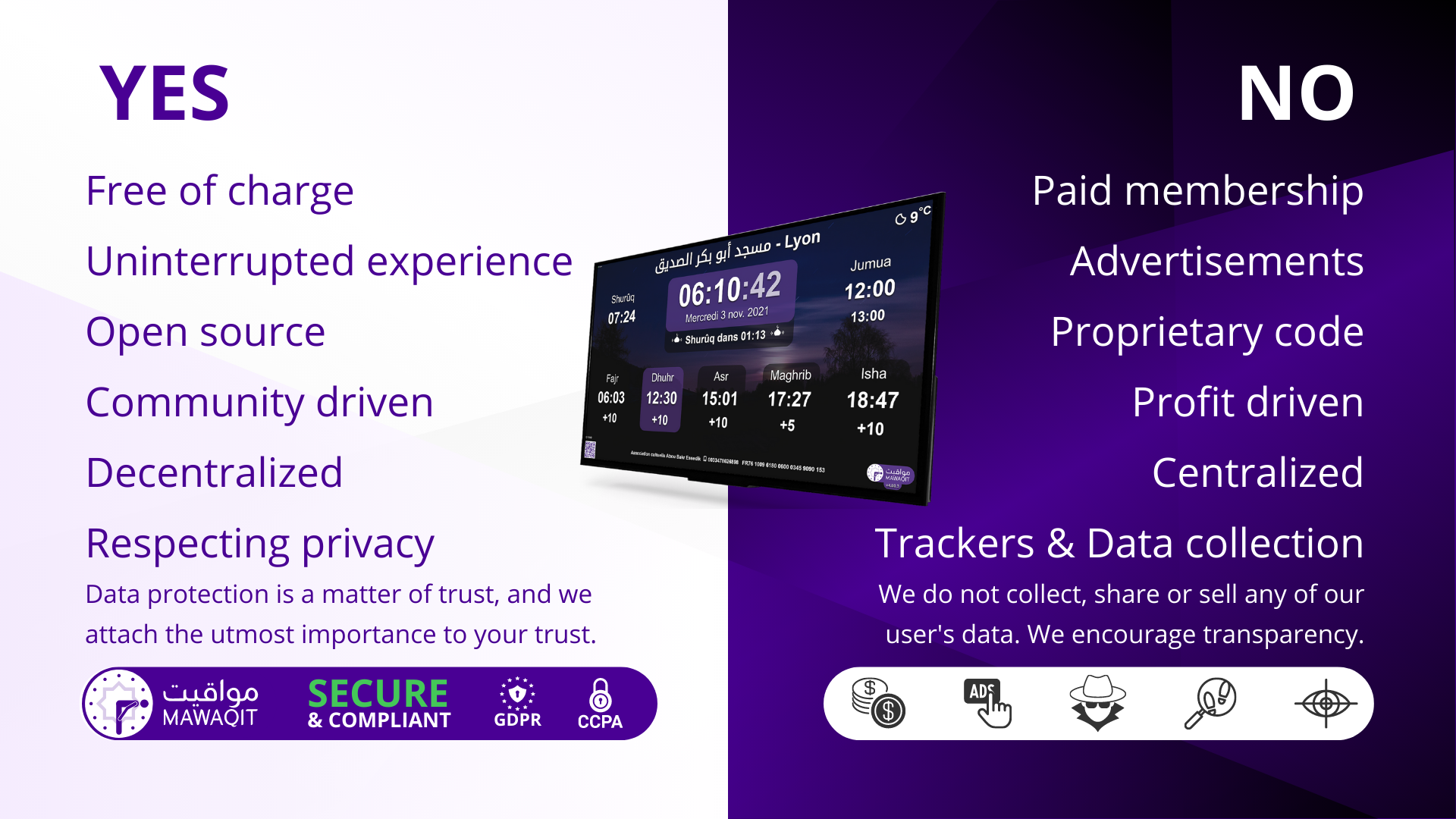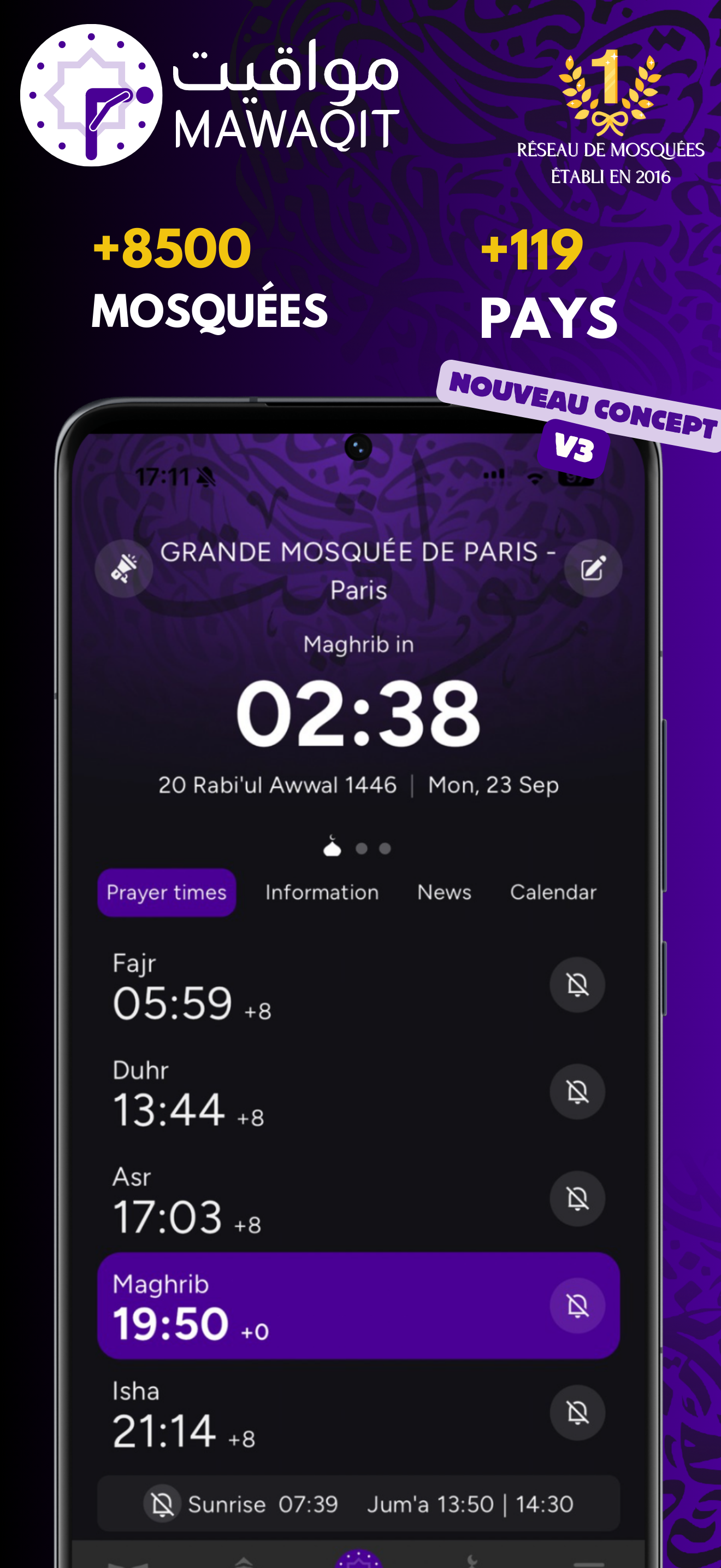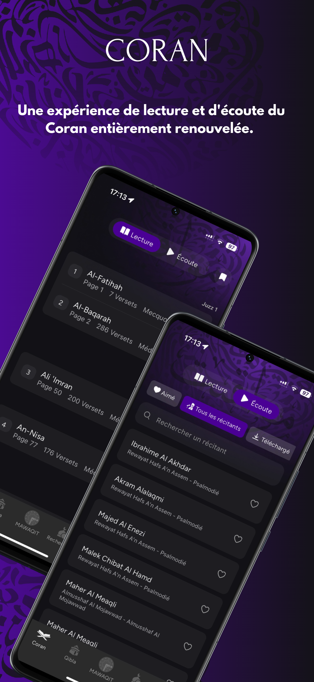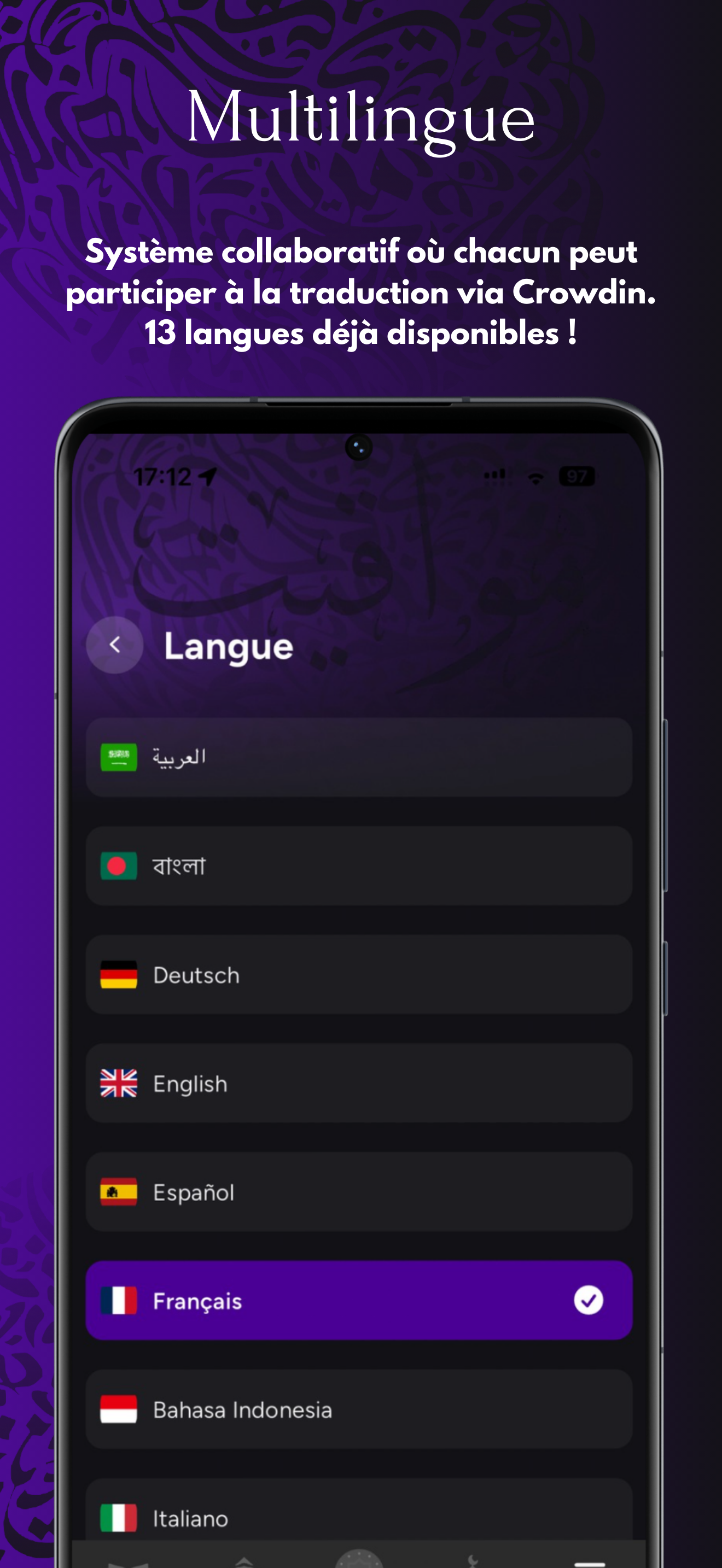 Découvrez la nouvelle vue Mawaqit 360. Appuyez longuement sur un verset pour écouter l’audio ou voir le Tafsir. Ajout de flèches dans les traductions du Coran, correction des recherches et ajout de la traduction albanaise. La recherche est disponible dans Azkar avec traduction française. Suppression en masse des fichiers audio. Amélioration des notifications en mode silencieux et précision de la Qibla, surtout près de la Kaaba. Gestion du compte à rebours de l’Icha après minuit.