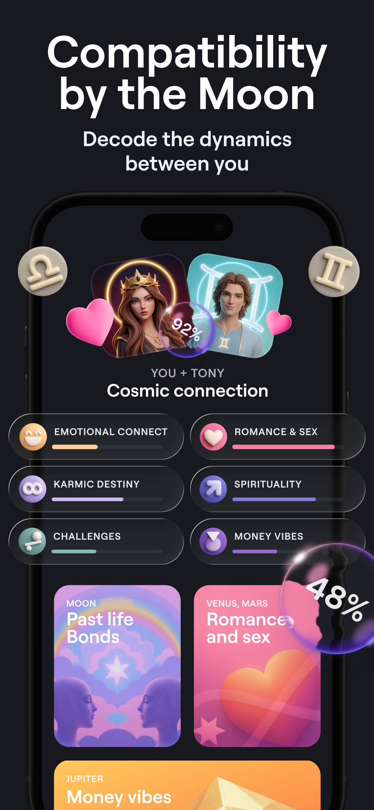 月の星占いを理解することは、変化と前向きな変化の世界への扉を開きます。今日私たちのムーンフェイズアプリをダウンロードして、癒しの旅に出かけましょう。太陽と月のエネルギーの世界に入ると、太陽と月があなたを導きます。