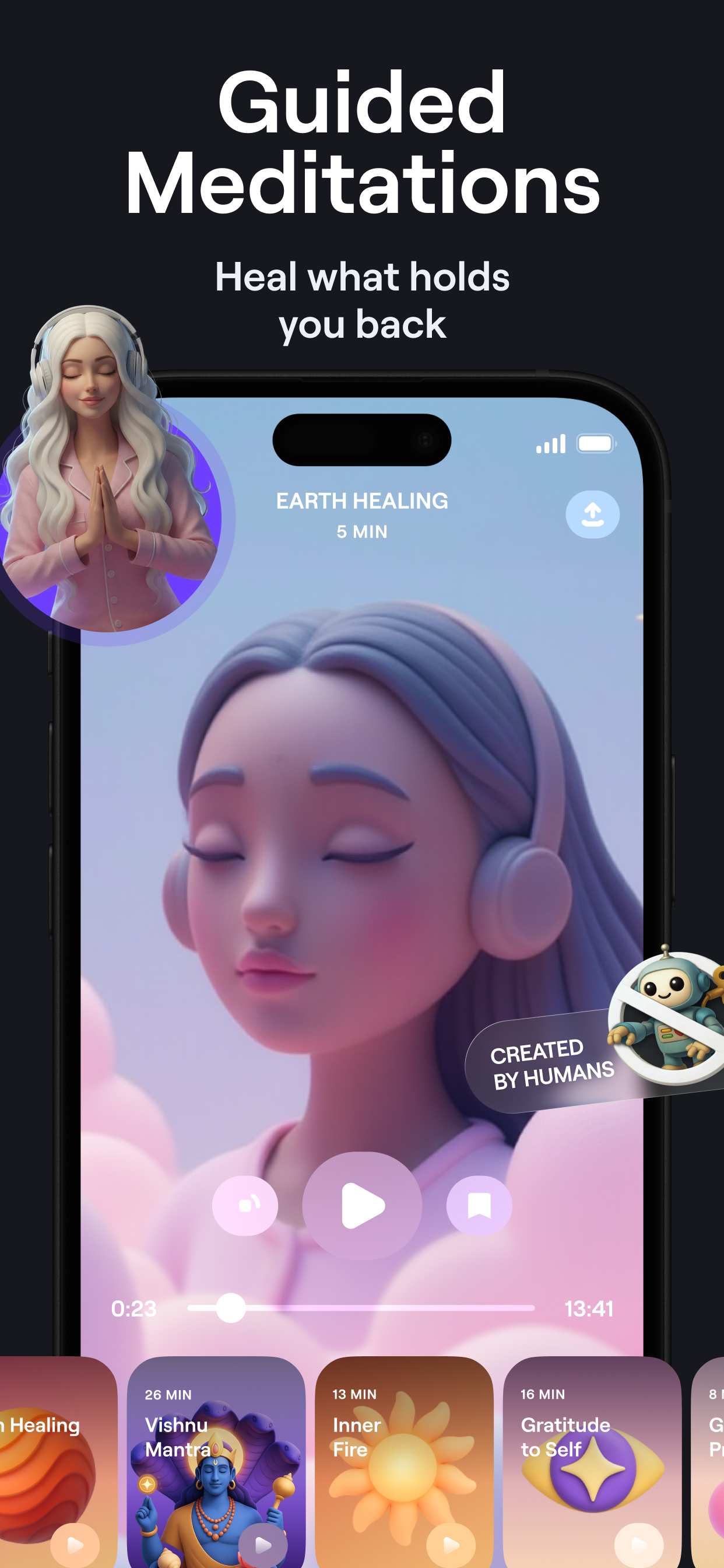 瞑想であなたの気づきと気づきを育ててください。あなたの考えをすべて手放し、あなた自身のためだけにあなたの時間を過ごしてください。心を浄化し、睡眠導入し、体をリラックスさせます。少なくとも1分間の瞑想から始めて、時間をかけて練習時間を延長してください。ガイド付きの睡眠瞑想に耳を傾け、夜の深い癒しの睡眠の準備をしてください。