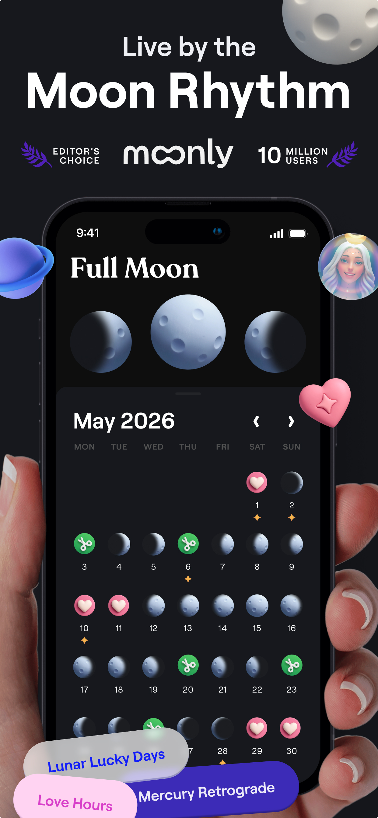 Moonlyは記事、ヒント、儀式を共有しているので、月の星座をよりよく理解できます。月の写真を読み、星占いを理解し、日食や逆行惑星の間に何を期待するかを知る方法を学びましょう。毎月のヘアカットカレンダーと女性のサイクルを調べ、それに応じてスケジュールと作業負荷を調整します。