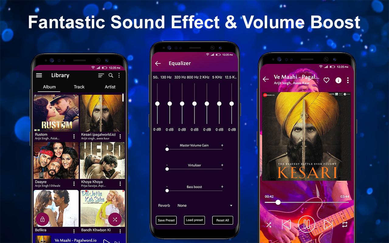 Music & Mp3 player with Powerful equalizer, Stylish UI Design, Quick search all music files. All these are free support for you.