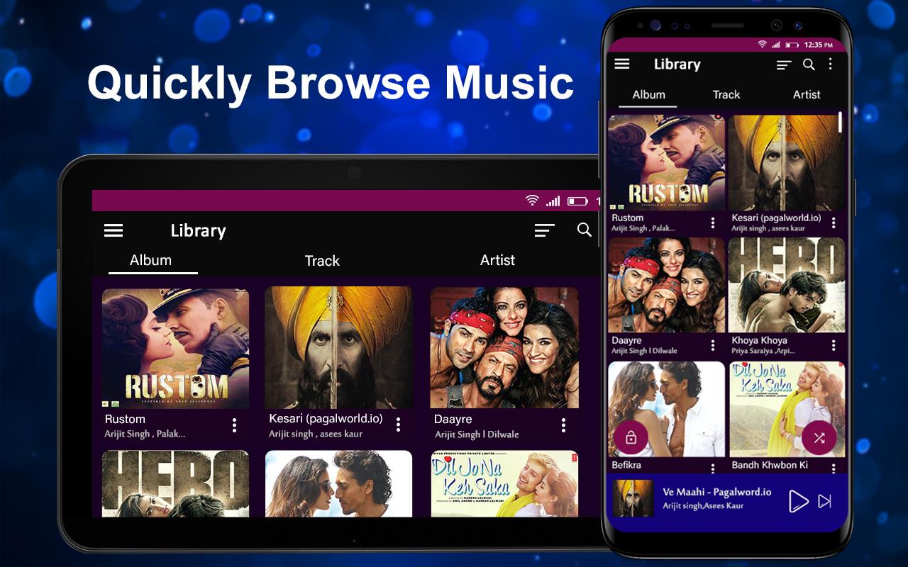 Powerful and Fast Mp3 player, Music player with elegant design. Music player lets you manage all your music files quickly and easily .This audio player supports almost all types of mp3 , midi ,wav , flac raw aac files and other audio formats . Easily browse and play music songs by genres , albums , artists , songs and folder .