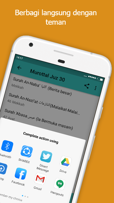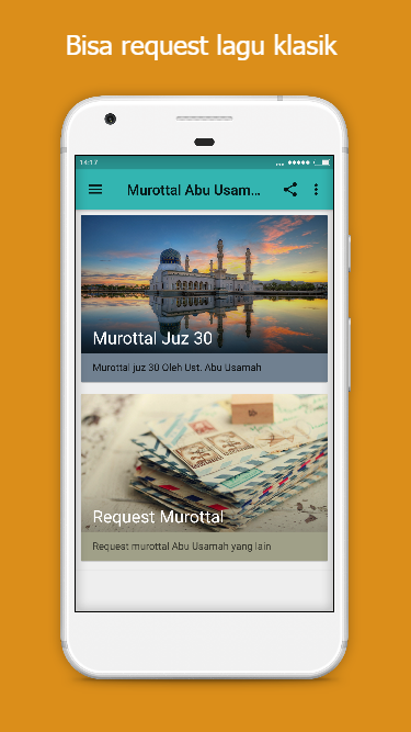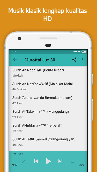 Apakah anda suka mendengarkan merdunya murottal Al-Qur'an? Jika iya maka anda tentu tidak asing dengan Abu Usamah. Aplikasi murottal abu usamah ini menyediakan murottal al-quran oleh Al Ustadz Abu Usamah. Anda dapat nedengarkan lantunan ayat-ayat al-qur'an juz 30 di aplikasi ini secara offline tanpa perlu menggunakan atau menghabiskan kuota internet anda. Berikut daftar surat al-quran yang bisa anda simak dan dengarkan dari aplikasi murottal ini: 1. Surah An-Naba’ النّبا 2. Surah An-Nazi’at النّازعات 3. Surah 'Abasa عبس 4. Surah At-Takwir التّكوير 5. Surah Al-Infitar الانفطار 6. Surah Al-Tatfif المطفّفين 7. Surah Al-Insyiqaq الانشقاق 8. Surah Al-Buruj البروج 9. Surah At-Tariq الطّارق 10. Surah Al-A’la الْأعلى 11. Surah Al-Gasyiyah الغاشية 12. Surah Al-Fajr الفجر 13. Surah Al-Balad البلد 14. Surah Asy-Syams الشّمس 15. Surah Al-Lail الّيل 16. Surah Ad-Duha الضحى 17. Surah Al-Insyirah الانشراح 18. Surah At-Tin التِّينِ 19. Surat Al-'Alaq العَلَق 20. Surah Al-Qadr الْقَدْرِ 21. Surah Al-Bayyinah الْبَيِّنَةُ 22. Surah Az-Zalzalah الزلزلة 23. Surah Al-'Adiyat العاديات 24. Surah Al-Qari'ah القارعة 25. Surah At-Takasur التكاثر 26. Surah Al-'Asr العصر 27. Surah Al-Humazah الهُمَزة 28. Surah Al-Fil الْفِيلِ 29. Surah Quraisy قُرَيْشٍ 30. Surah Al-Ma’un الْمَاعُونَ 31. Surah Al-Kausar الكوثر 32. Surah Al-Kafirun الْكَافِرُونَ 33. Surah An-Nasr النصر 34. Surah Al-Lahab المسد 35. Surah Al-Ikhlas الإخلاص 36. Surah Al-Falaq الْفَلَقِ 37. Surah An-Nas النَّاسِ Semoga aplikasi murottal abu usamah ini dapat bermanfaat bagi pengguna sekalian. Jika anda suka dengan aplikasi ini, mohon memberikan review positif. Terima kasih