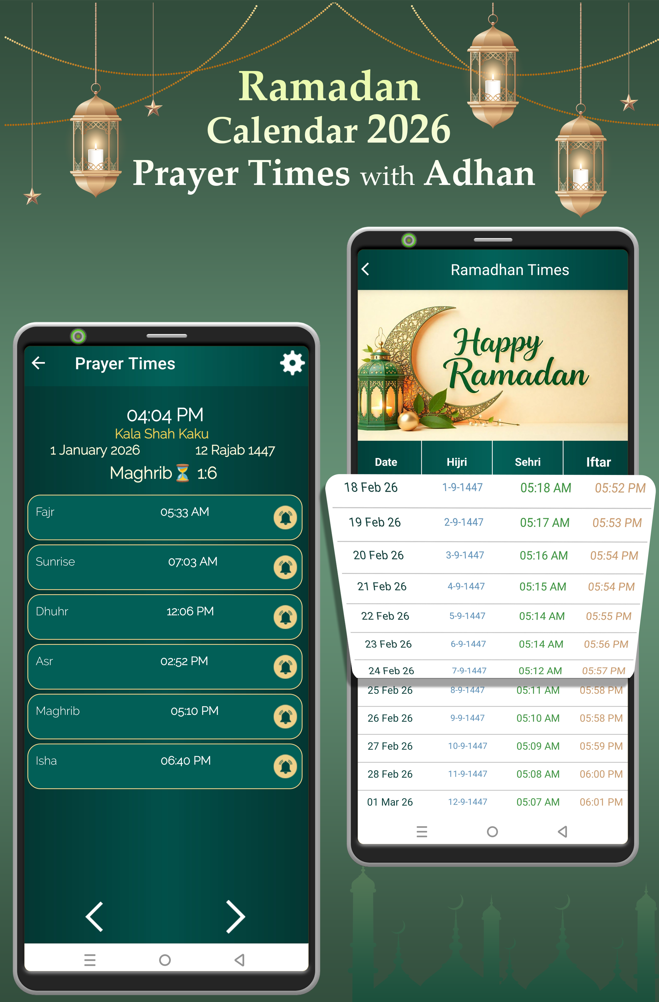 イスラム暦にアクセスして、重要な日付を把握できます。イスラム暦とグレゴリオ暦を簡単に変換できるので、祝祭日や行事を見逃すことはありません。