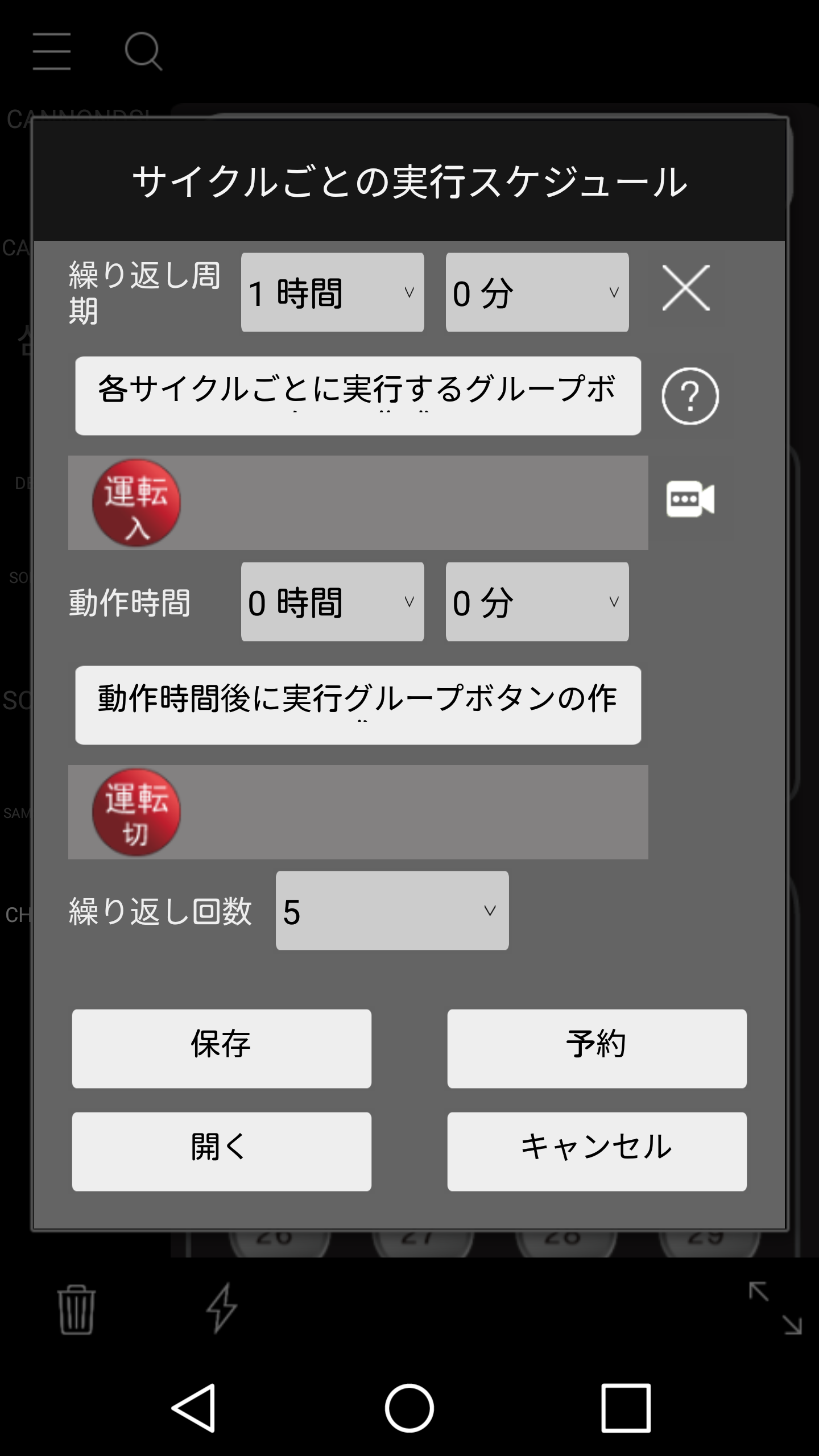 7.周期ごとに実行するボタンと経過時間後に実行ボタンを繰り返し回数を指定して予約することができている