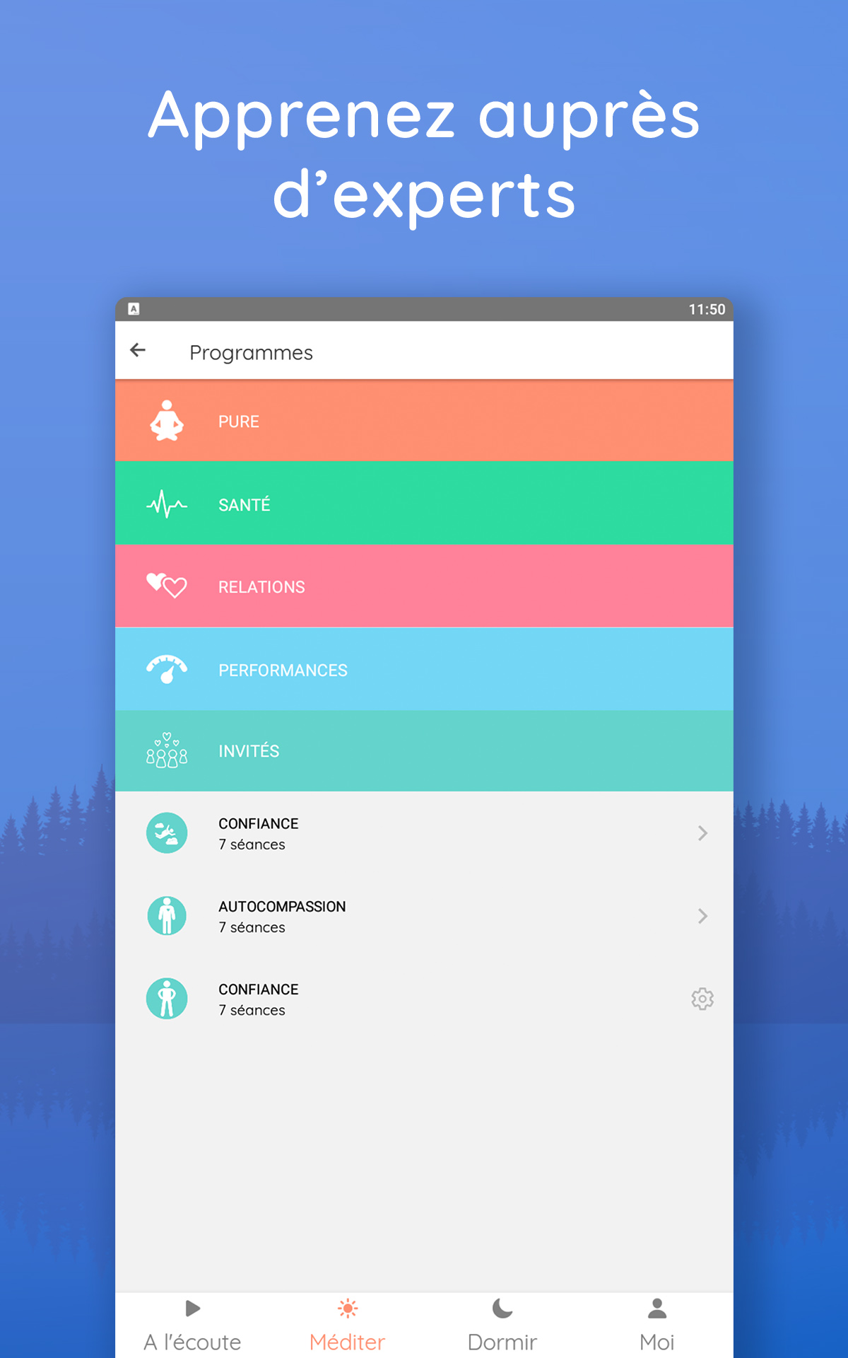 ガイド付き瞑想、マインドフルネス コース、睡眠音で心を落ち着かせ集中力を高めます。