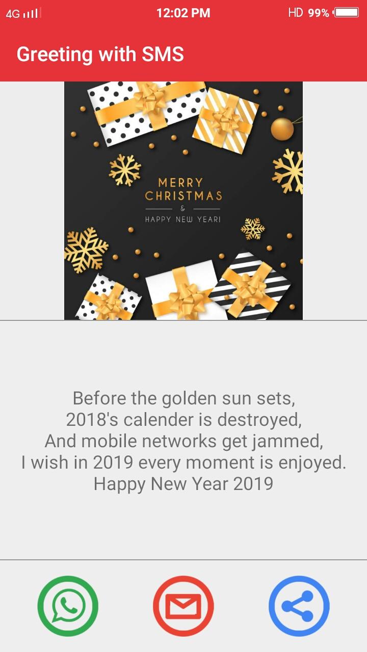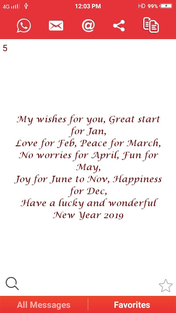 This application contains several nice happy new year 2019 sms & wishes. Just choose a new year message by swapping on device, read it & share.
