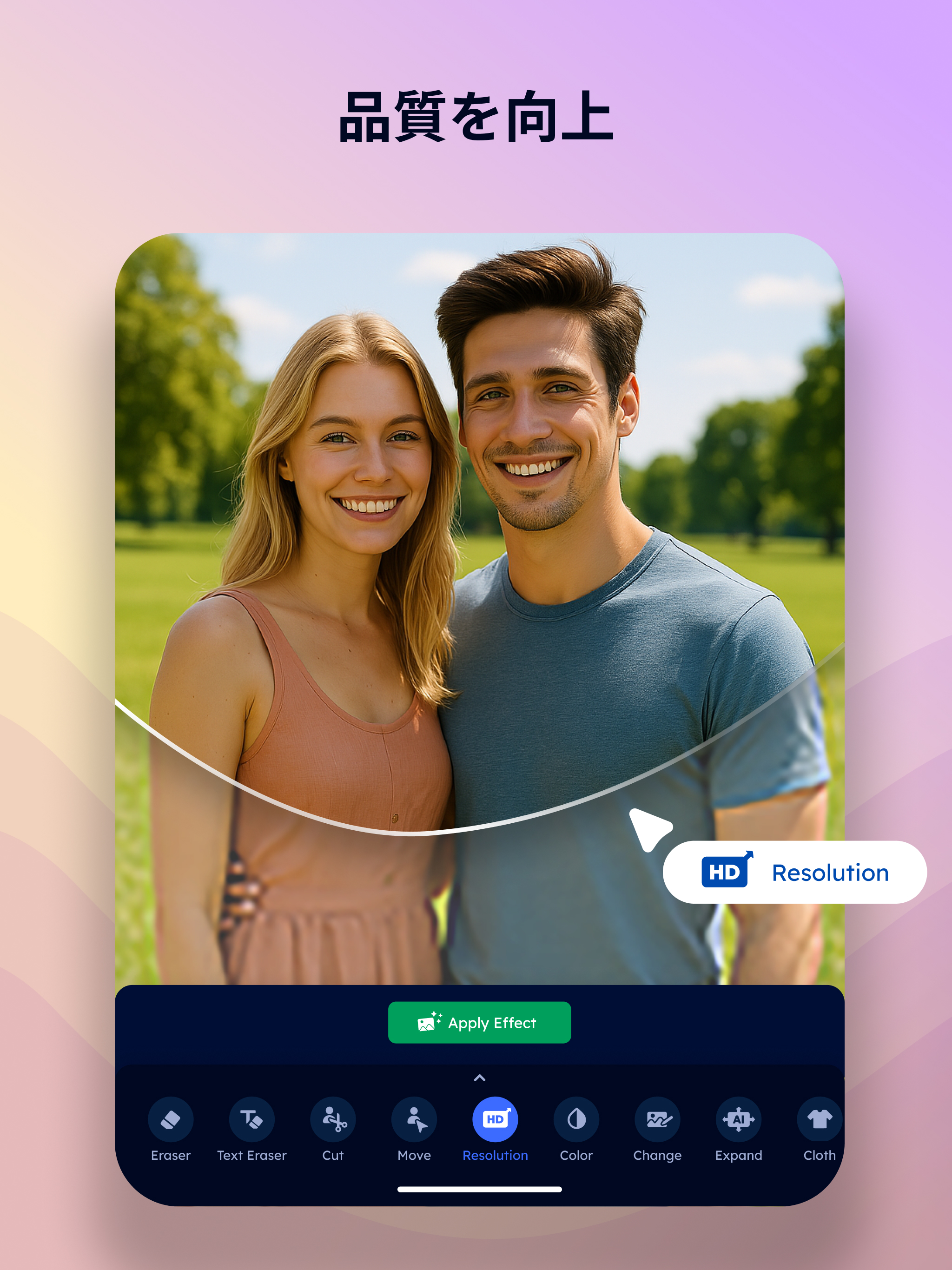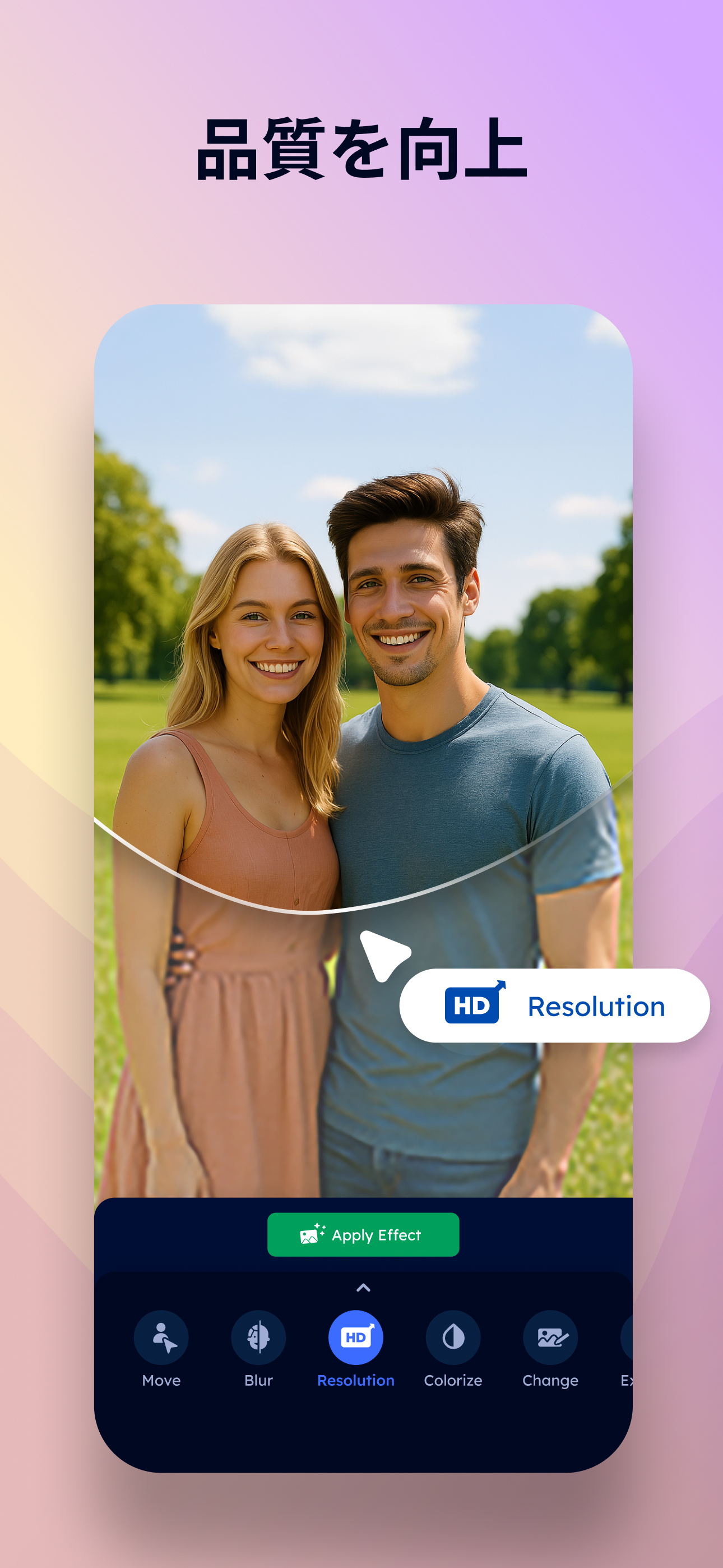 画質を良くするアプリとして、ぼやけた写真を高画質に復元。高画質化で画像高画質な仕上がりに。写真復元で古い写真も鮮明に蘇らせ、画像修正・写真調整・画質向上で全体のクオリティをアップします。高画質カメラのような高品質な補正で、消した画像を復元する機能も搭載。高画質にするアプリ・画像綺麗にするアプリとしても活躍し、解像度を上げて写真の鮮明さを取り戻します。大切な思い出の写真を美しく蘇らせましょう。
