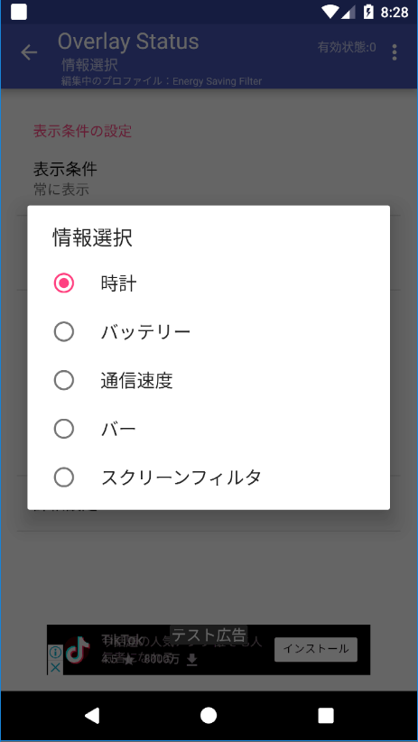 ステータス オーバーレイ (バッテリー残量バーや時刻など)