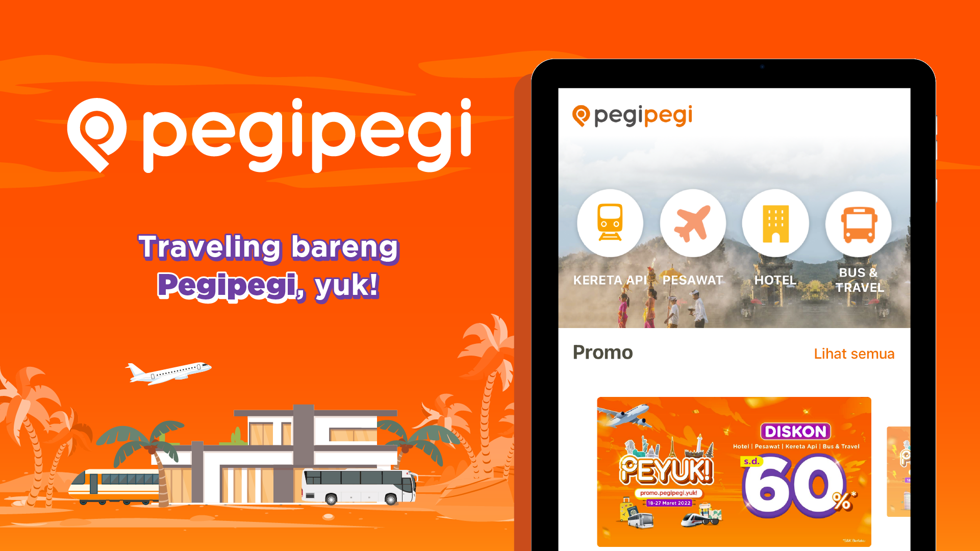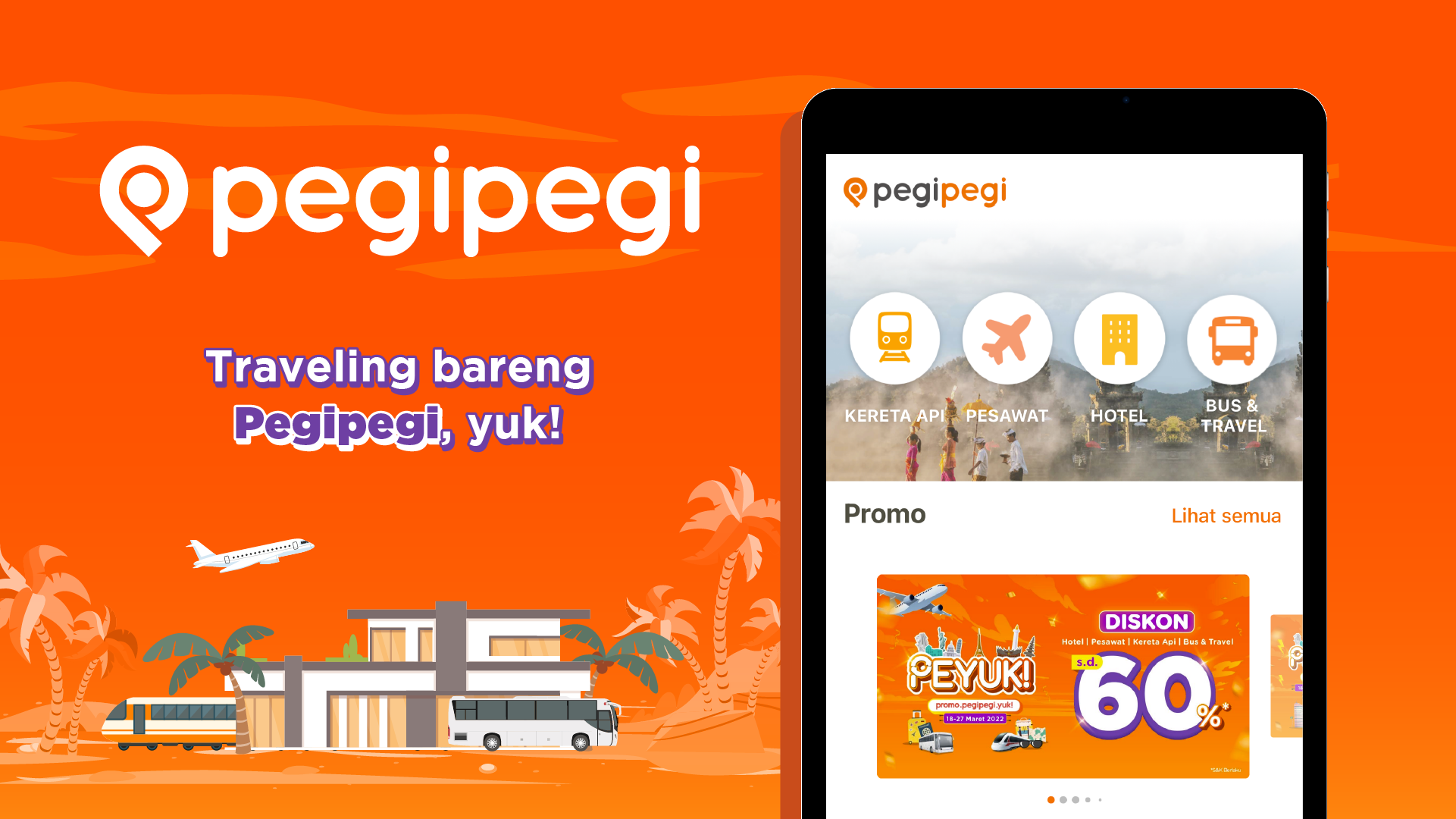 Pegipegi は、航空券、ホテル、鉄道チケット、バス、旅行の予約に使いやすいオンライン予約サービスを提供しています。