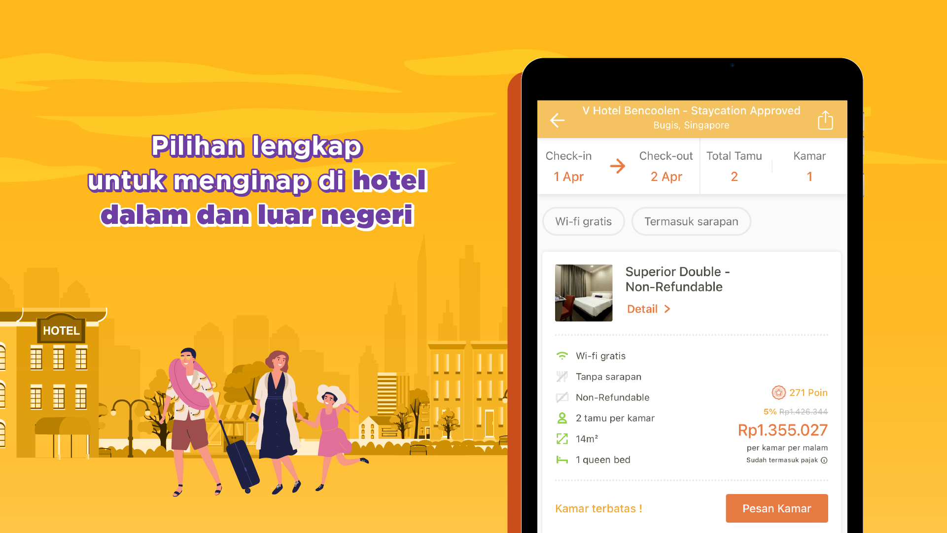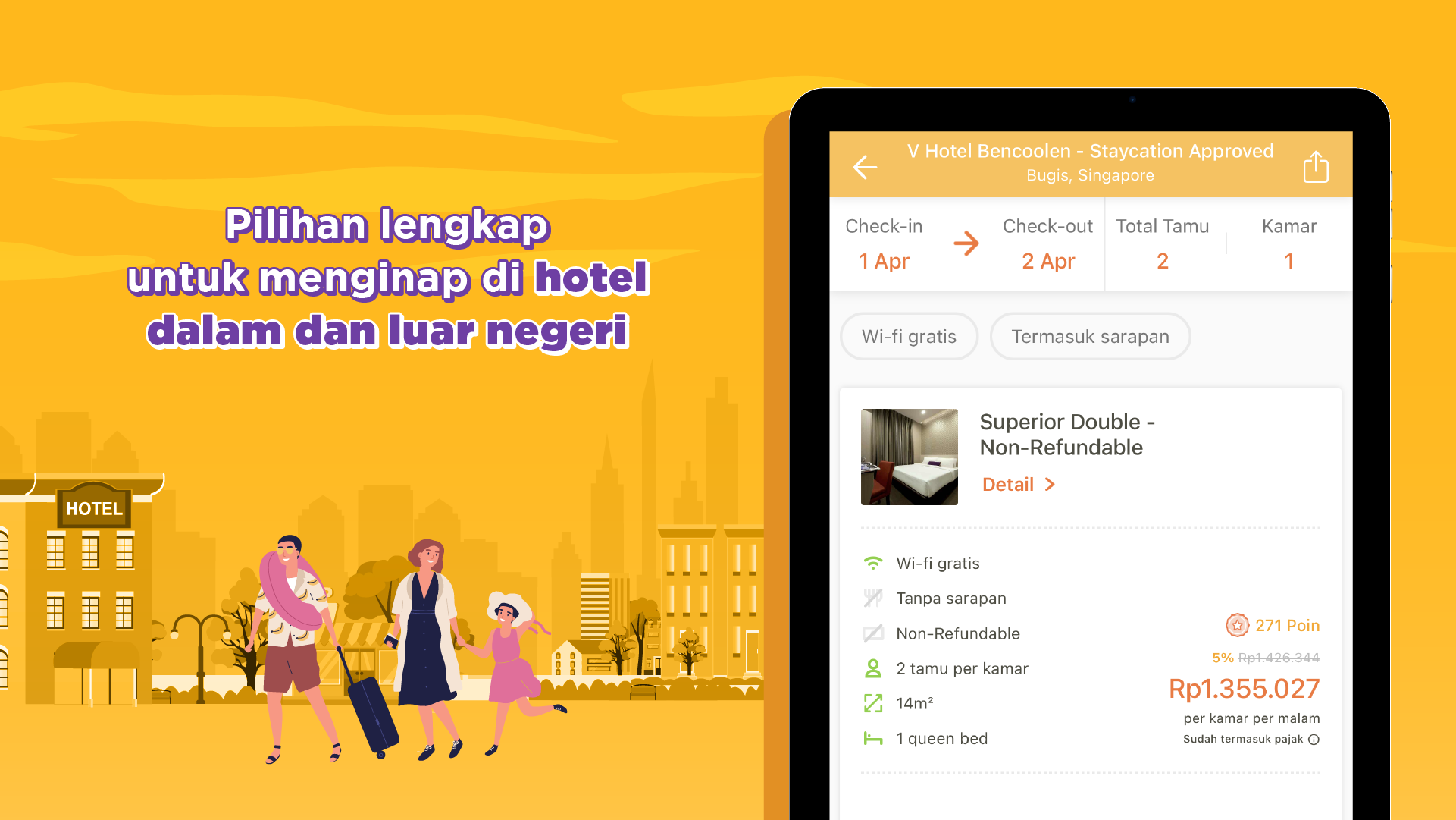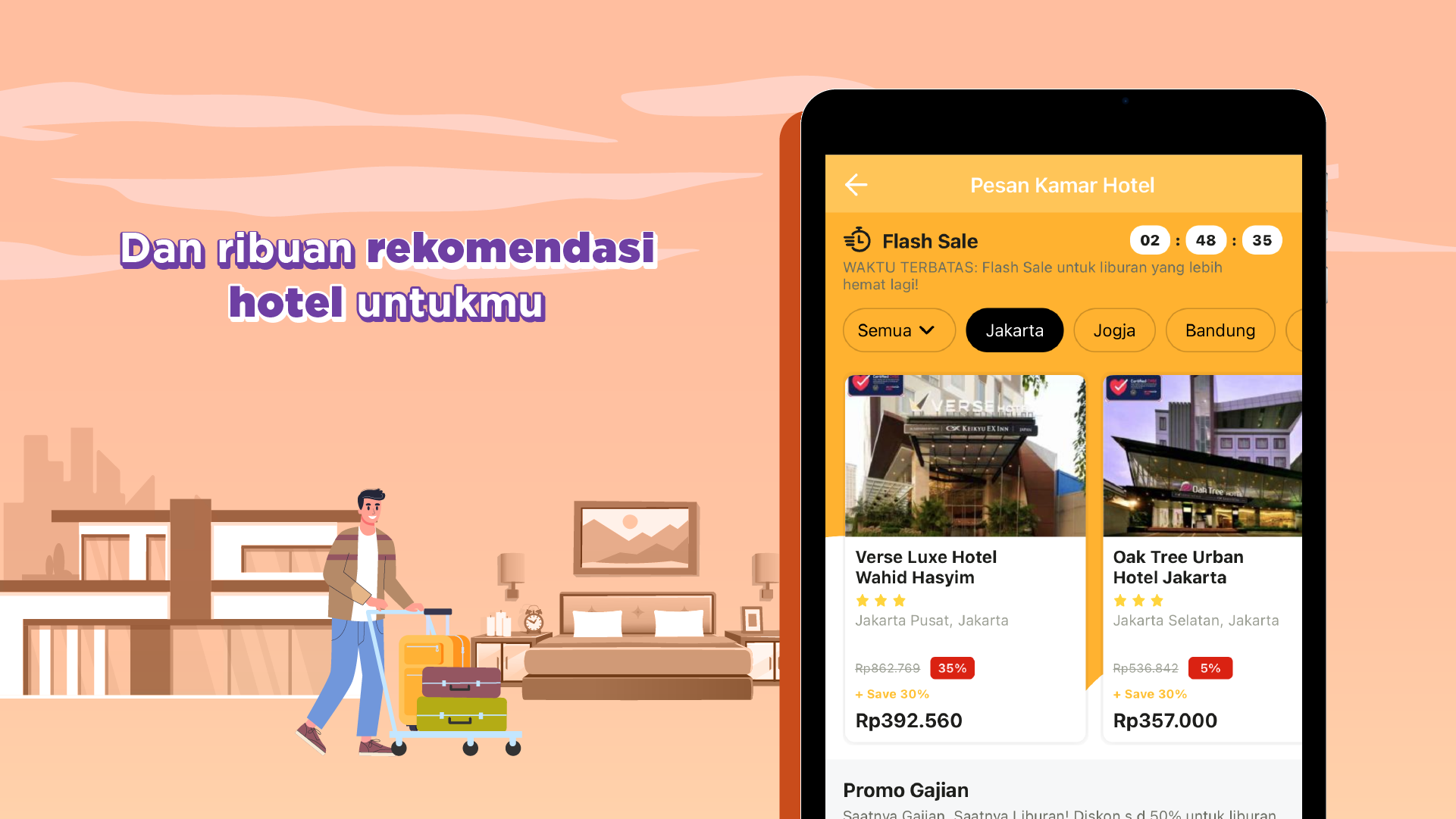 •ホテルグループと正式に提携しています:アマリスホテル、アストンホテル、ベストウェスタンホテル、フェイブホテル、グランドチョクロホテル、ハリスホテル、ホライズンホテル、ジャヤカルタホテル、カグムホテル、POP!ホテル、レッドドアーズ ホテル、レッド プラネット ホテル、サヒド ホテル、サンティカ ホテル、スイス ベルホテル、ウィズ ホテル、ZEN ルームなど多数