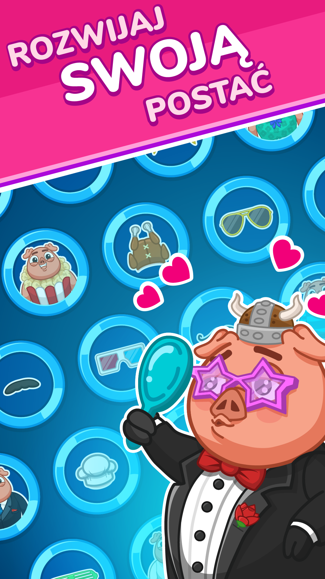 Zbieraj punkty doświadczenia, zdobywaj kolejne rangi i odznaczenia, a także wspinaj się w rankingu, aby zostać Królem Wszystkich Świnek.