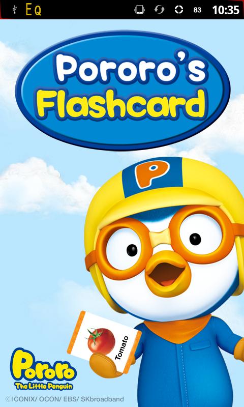 Play with the flashcards and learn the names of different objects in Korean and English as you read, write and speak while familiarizing yourself with the pictures. --------------------------------------------------------------------------------------------------------------------- 2. Main Features Play Listen and repeat, write and play games as you look at the pictures to learn new words while having fun. My Badges Collect Pororo and friends badges while you play with the flashcards. Diary You will receive a Pororo stamp on the days you play with the flashcards, so you can always go back and review the words you learned. --------------------------------------------------------------------------------------------------------------------- 3. Contents Learn vocabulary according to subjects - Learn 150 words under 7 different subjects; My Home, Food, Numbers, Tools and Machines, Animals, Riders, Characters Activities - Learn: Look at the pictures and hear the names to learn new words. - Test: Name the objects as you look at the pictures. - Quiz: Pop the word-balloon that matches the picture - Write: Copy the words or practice writing on your own.