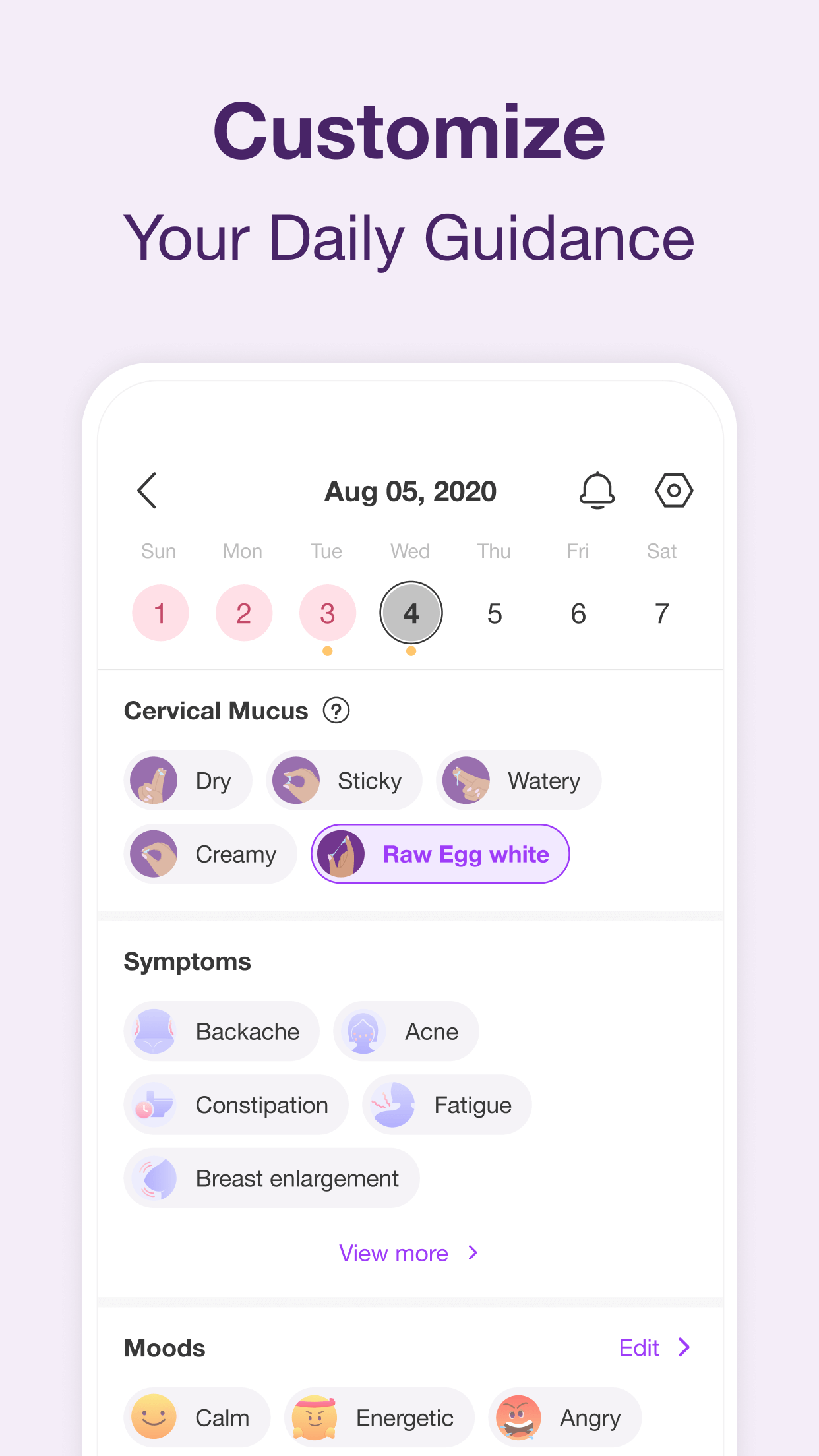 • 50 以上の症状と気分を記録して、ホルモンの変化を監視し、正確な排卵予測を取得します