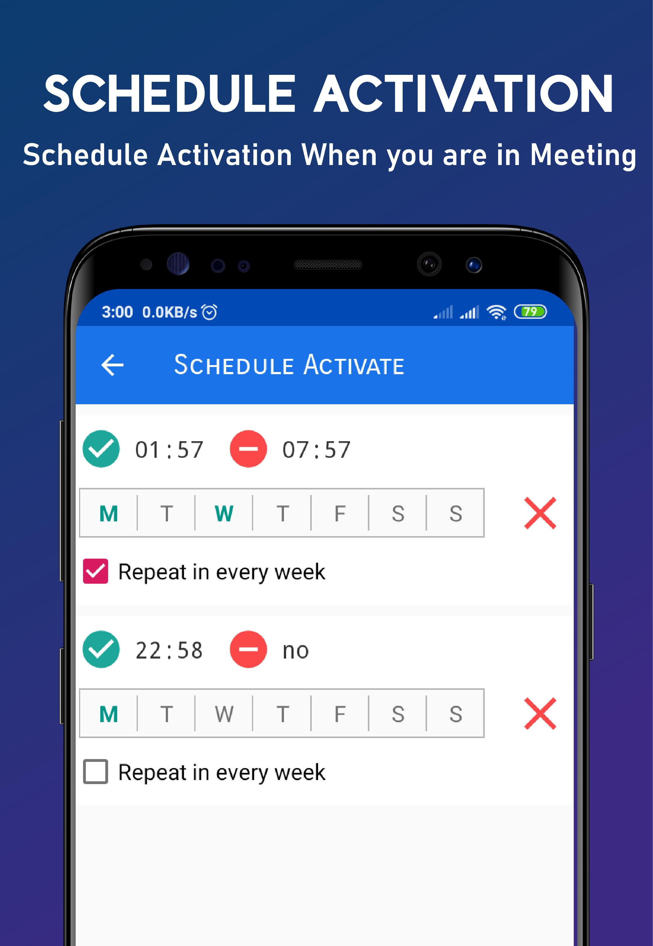* Schedule deactivation, for special time like: meeting, examination or silent night sleep.