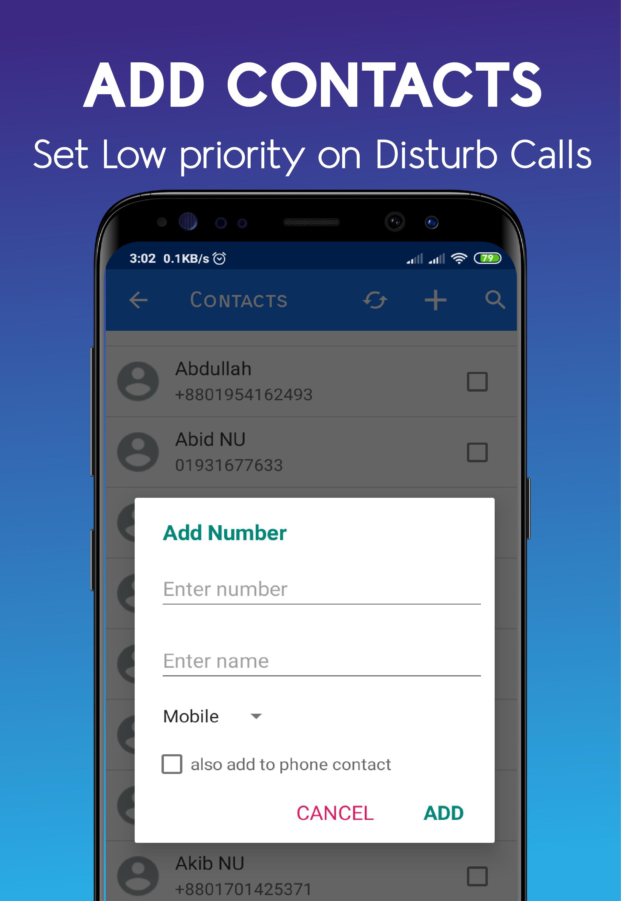 This contact manager is great contact management app to help you sort priority call. You can call control with call volume control. You can manage contacts priority. It will help you to understand what contact call is important to you and how much. So you phone can be behave on your necessity. Silent manager also help you to keep you focus on work by make disturbing call mute. And our scheduler give your next level of power, you can do sound control on schedule time base.