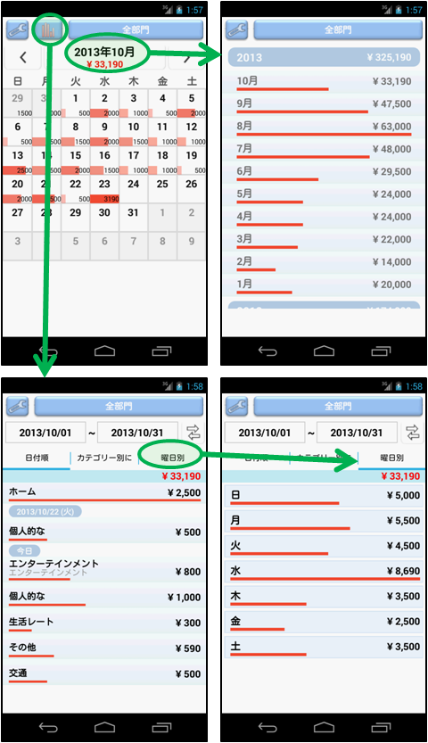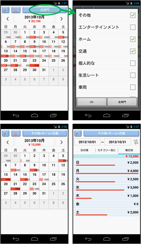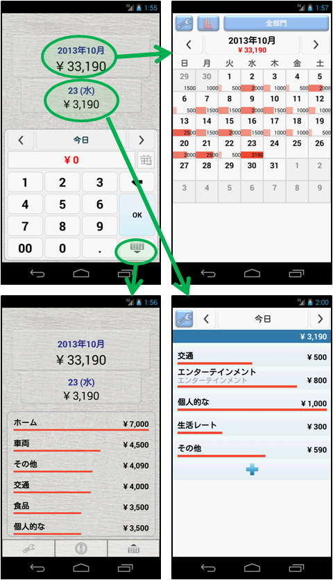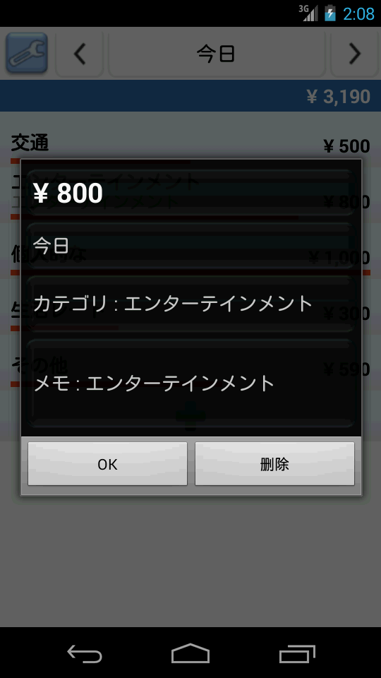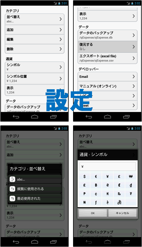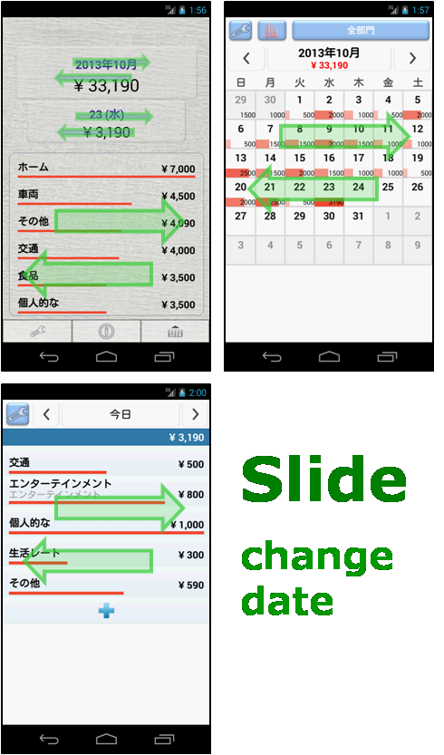 複雑なのは嫌〜 簡単、シンプル支出管理! シンプルな家計簿アプリ! --------- あなたが探している - 簡単な支出分析? - シンプルな経費トラッカー? - 迅速な予算トラッカー? --------- 簡単に入力し、 カレンダーなどを介して一目で支出を把握することができます。 このアプリは、所得の入力がありません。 ただ支出についてのみ入力と分析を提供します。 ので、非常に簡単にアプリケーションを使用することができます。 --------- このページの"追加情報"フィールドに"開発者のWebサイトにアクセスする"をクリックしてください より詳細な画像ベースのマニュアルを参照することができます。 (直接" http://escapps.blogspot.kr/ "を参照もできます。 ) --------- 特徴 - クイック支出入力 - カレンダーによる支出状況 :支出量に応じた相対的なバーグラフと表示された金額を介して簡単に毎日の支出状況を把握することができます。 - 総支出のリスト :年度ごとの合計、毎月の合計を提供します。 :クリックすると、右のカレンダーで日別の使用状況を確認することができます。 - カレンダーと総支出のリストは、すべてのカテゴリでフィルタリングすることができます。 - カテゴリの並べ替え機能( 1 。アルファベット順、2。最も多く使用したため、 3 。最近使用した順) - データのバックアップ/復元、スプレッドシート(エクセル)ファイルへのエクスポート - スライド(ドラッグ) --------- おこづかい、支出、出費、しゅっぴ、予算、むだづかい、節約、会計、倹約、財務、貯金、貯蓄、経理、帳簿、買い物。 ================ Quick, Simple and Easy!!! Quick Expense Manager --------- If you visit "http://escapps.blogspot.kr/ ", you can see the Image-based manual. --------- You can see at a glance how much you have spent through the calendar. Quick and simple expense item entering. This app do not have a income field. Just for expenses. Most people already know their budget. For this reason, you can use this app very easily. --------- Features - Calendar (can know how mush you have spent money by graph and numbers) - Total spent list - Both a calendar and a total spent list can filtering by category. - Can sort category (alphabetically, frequently used and recently used) - Data backup/restore, export to spreadsheet(like Excel) file - Slide(Drag) : change month in a calendar, change date in a daily view