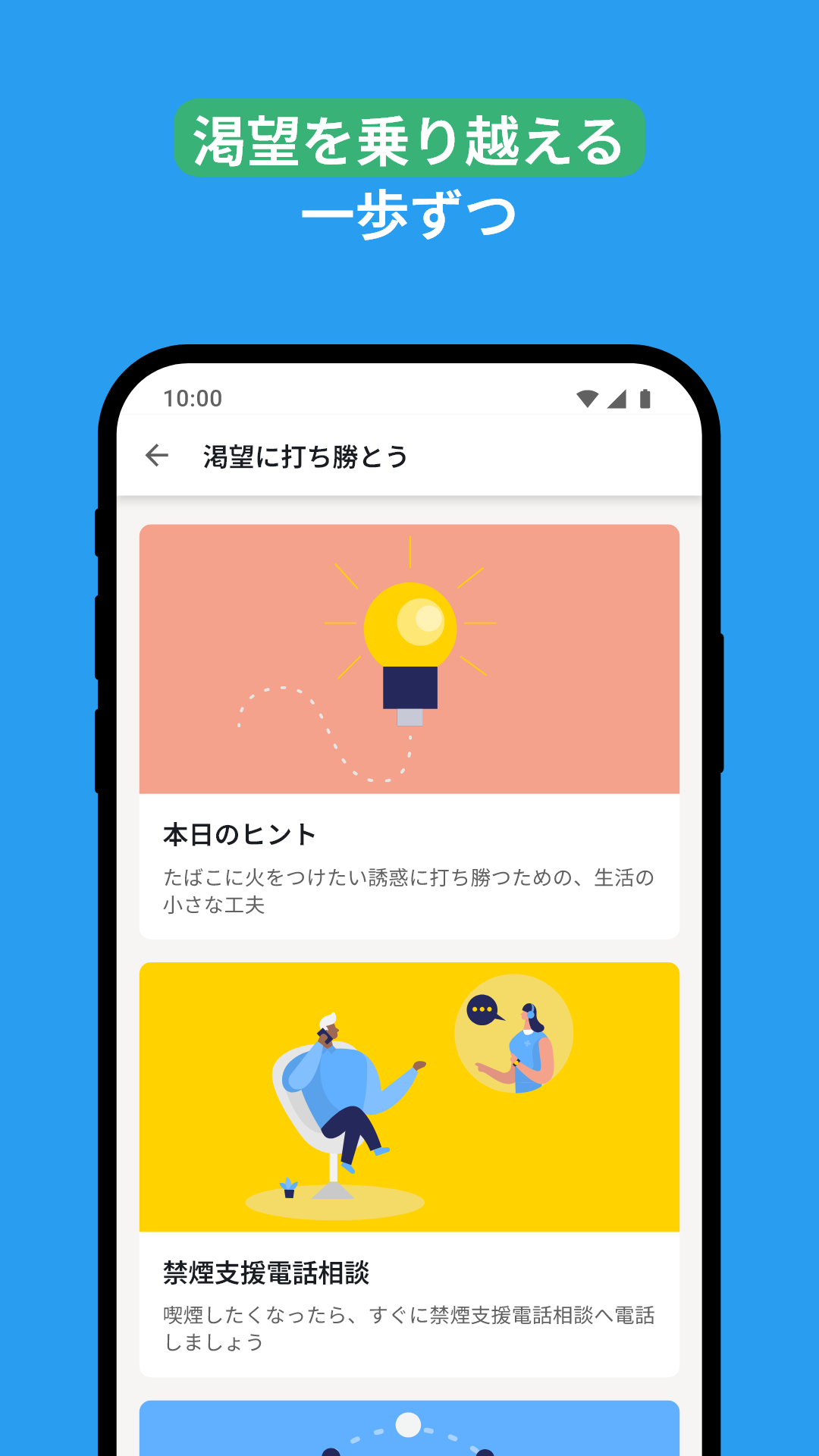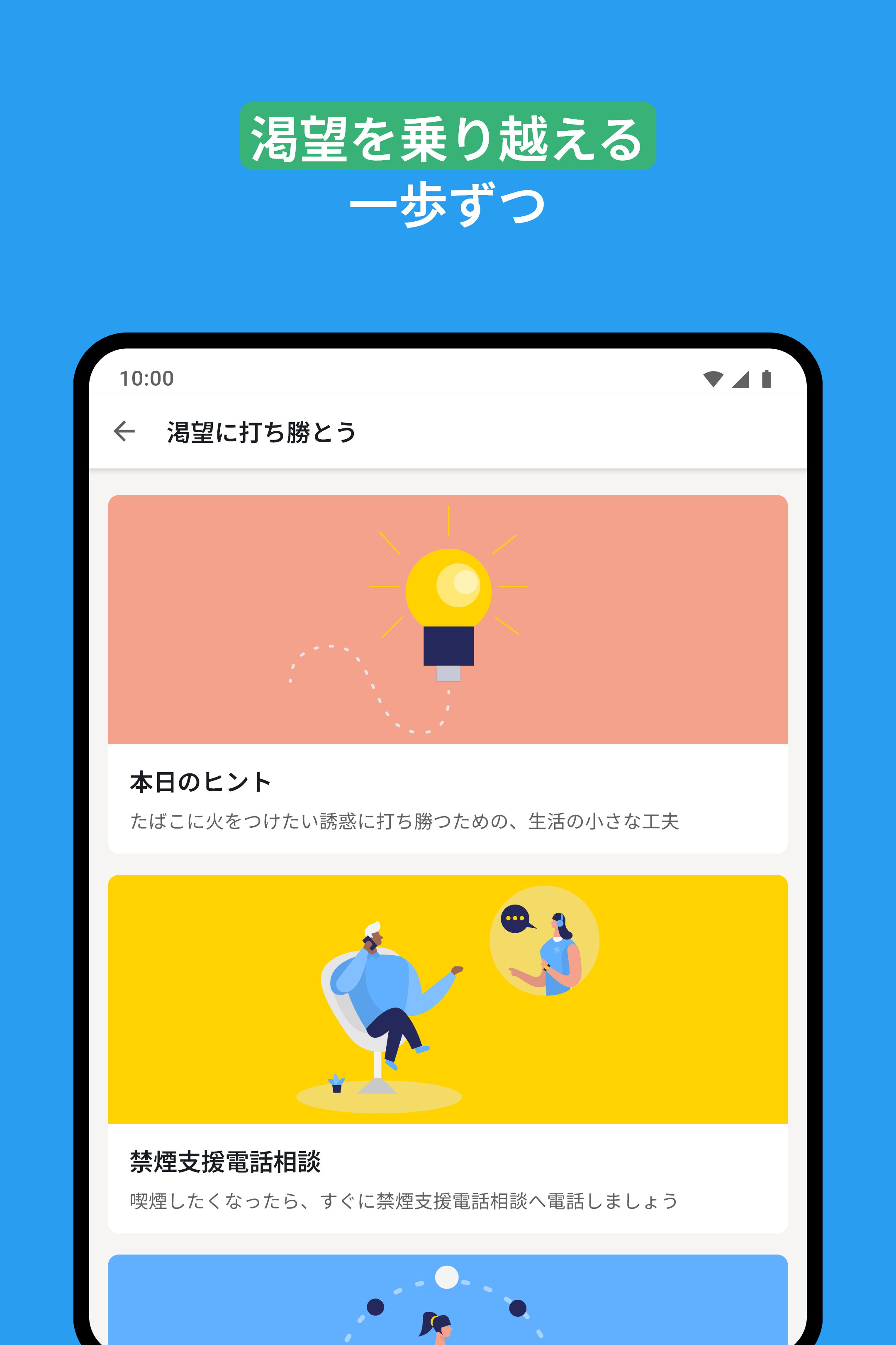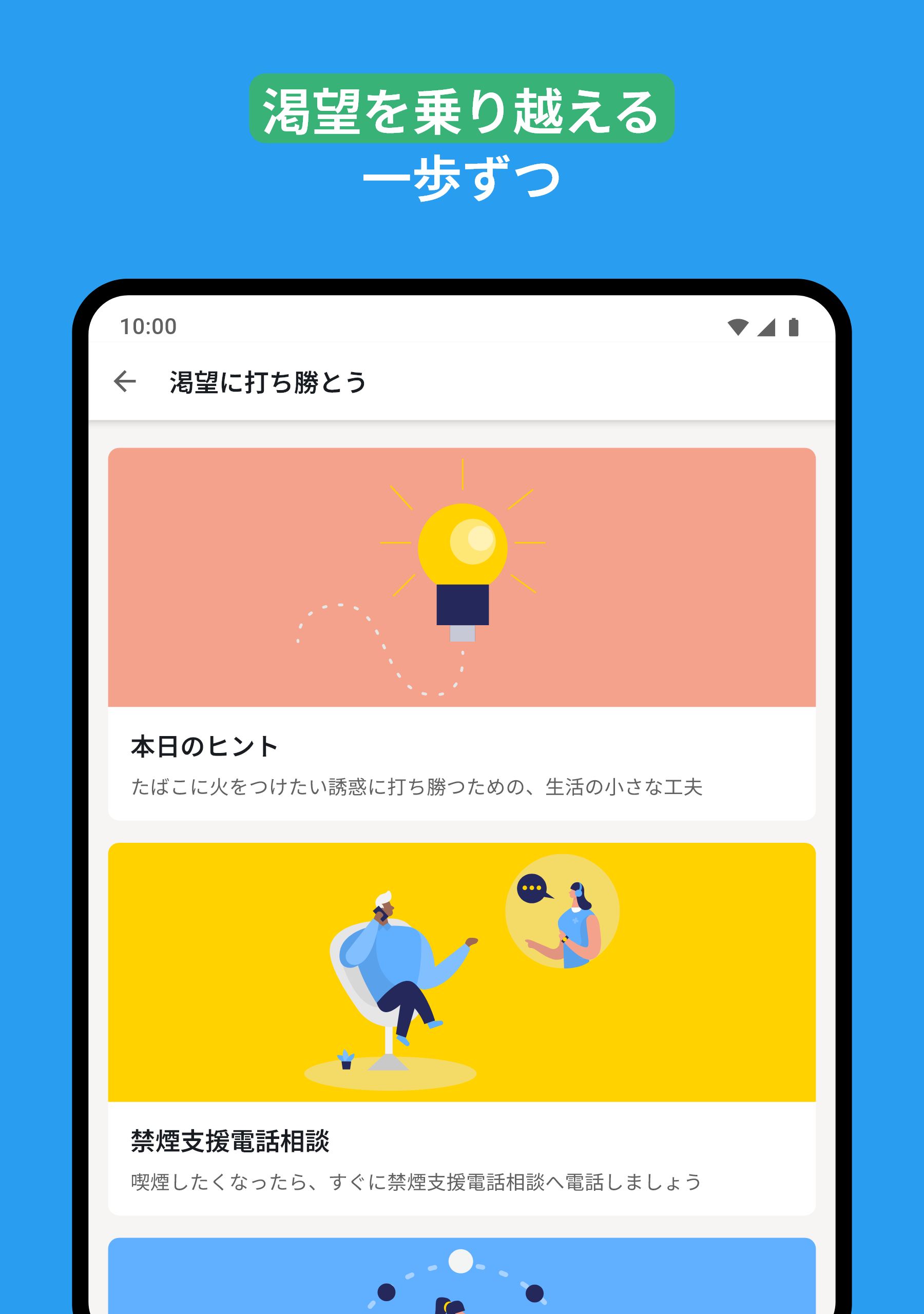 コミュニティ:元喫煙者のチャット: 禁煙するときは、禁煙エリアに留まる必要があります。QuitNowは、あなたのようにタバコにさよならを告げた人々が集まるチャットを提供します。非喫煙者と過ごす時間は、あなたの道をより容易にします。