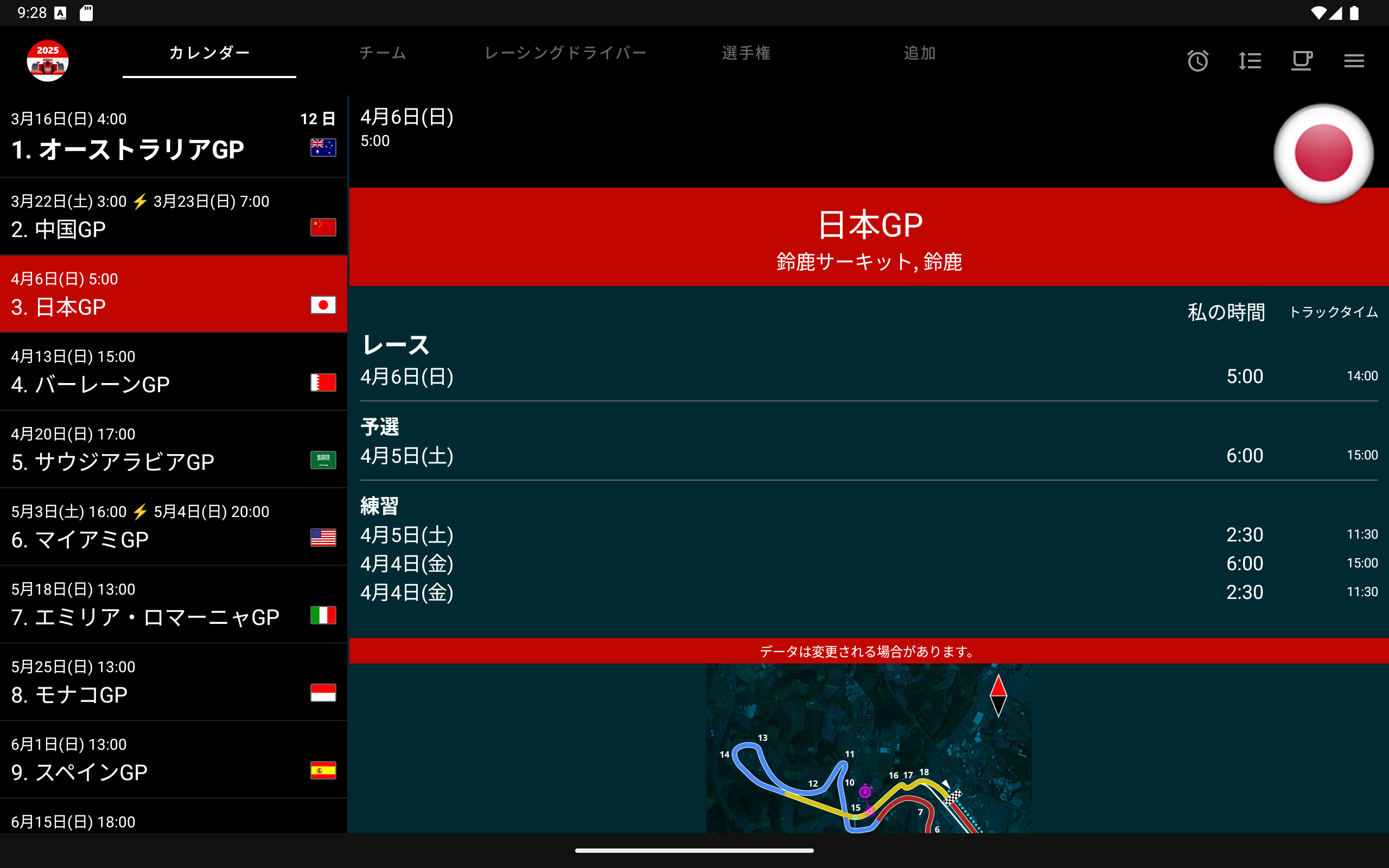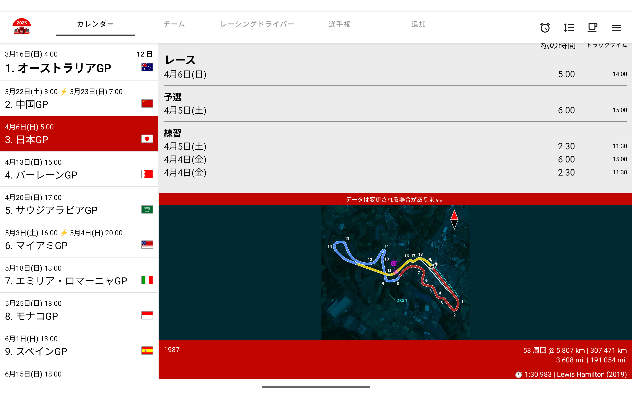 レーシングカレンダー2026 + ランキング。