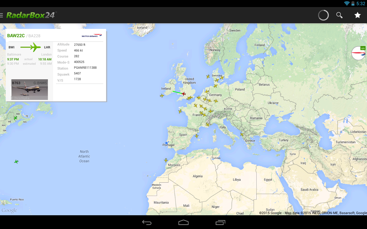 Radar-Box24 has been developed by Aviation Professionals including Airline Pilots. Data comes in real-time from the Aircraft Transponder to your phone using a network of thousands of AirNav RadarBox ADS-B receivers deployed in over 100 countries.