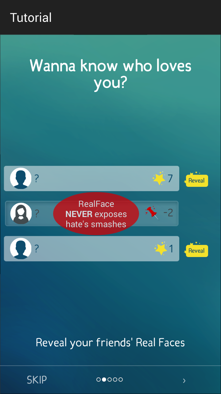 RealFace is the first social app that lets you reveal your real social status and find out who really likes you. No more fake likes.