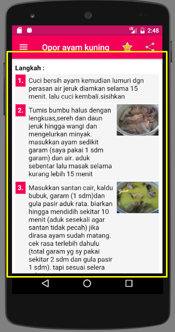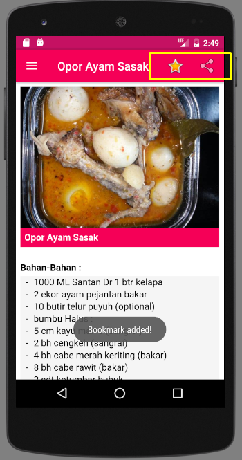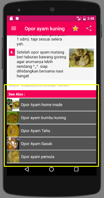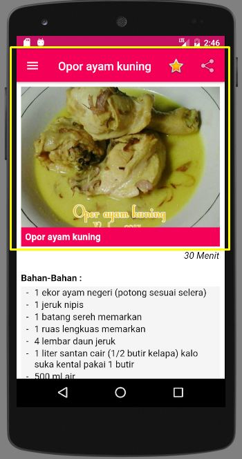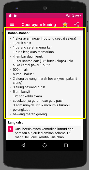 Temukan 500+ Resep Opor Ayam terbaik dengan berbagai variasi memasak mulai dari resep masakan opor ayam kuning, opor ayam putih, Opor Ayam Pedas, Opor Ayam Tahu Pedes dari yang sederhana hingga yang spesial untuk keluarga tercinta. Opor ayam merupakan masakan yang sangat dikenal di Indonesia. Opor ayam sebenarnya adalah ayam rebus yang diberi bumbu kental dari santan yang ditambah berbagai bumbu seperti serai, kencur, dan sebagainya. Dalam tradisi Jawa, perayaan Lebaran biasanya dibuat meriah dengan membuat ketupat yang disajikan dengan opor ayam dan sambal goreng hati. Opor ayam merupakan salah satu hidangan yang sering muncul dalam momentum lebaran atau hari raya dan acara-acara spesial lainnya. Akan tetapi dalam keseharian, menu opor ayam juga tidak mesti ditiadakan dalam daftar menu makan mingguan atau bulanan. Masakan berbahan dasar ayam ini relatif mudah untuk di masak, dengan bumbu utama bawang merah, bawang putih, serai serta kuah santan kelapa akan membalut daging ayam yang empuk serta gurih. Ingin mencoba memasak Opor Ayam sendiri, resep terbaik Opor ayam bumbu kuning, Opor ayam santan bumbu kuning dan lain-lain yang lezat untuk keluarga Anda? Download Aplikasi berikut ini. Fitur-fitur: - Aplikasi dapat dibaca secara Offline Tanpa Koneksi Internet (kecuali gambar) - Fitur berbagi resep - Fitur Zoom halaman - Fitur Bookmark - Navigasi yang baik dan mudah digunakan - Lebih cepat dan ringan - Fitur pencarian yang baik Download aplikasi "Resep Opor Ayam" - Aneka Resep dan Cara Memasak Opor Ayam Spesial Untuk Keluarga. Dalam aplikasi ini tersedia ratusan resep cara membuat Opor Ayam dengan variasi dengan step-step yang jelas dan mudah untuk diikuti dan dipraktekkan.