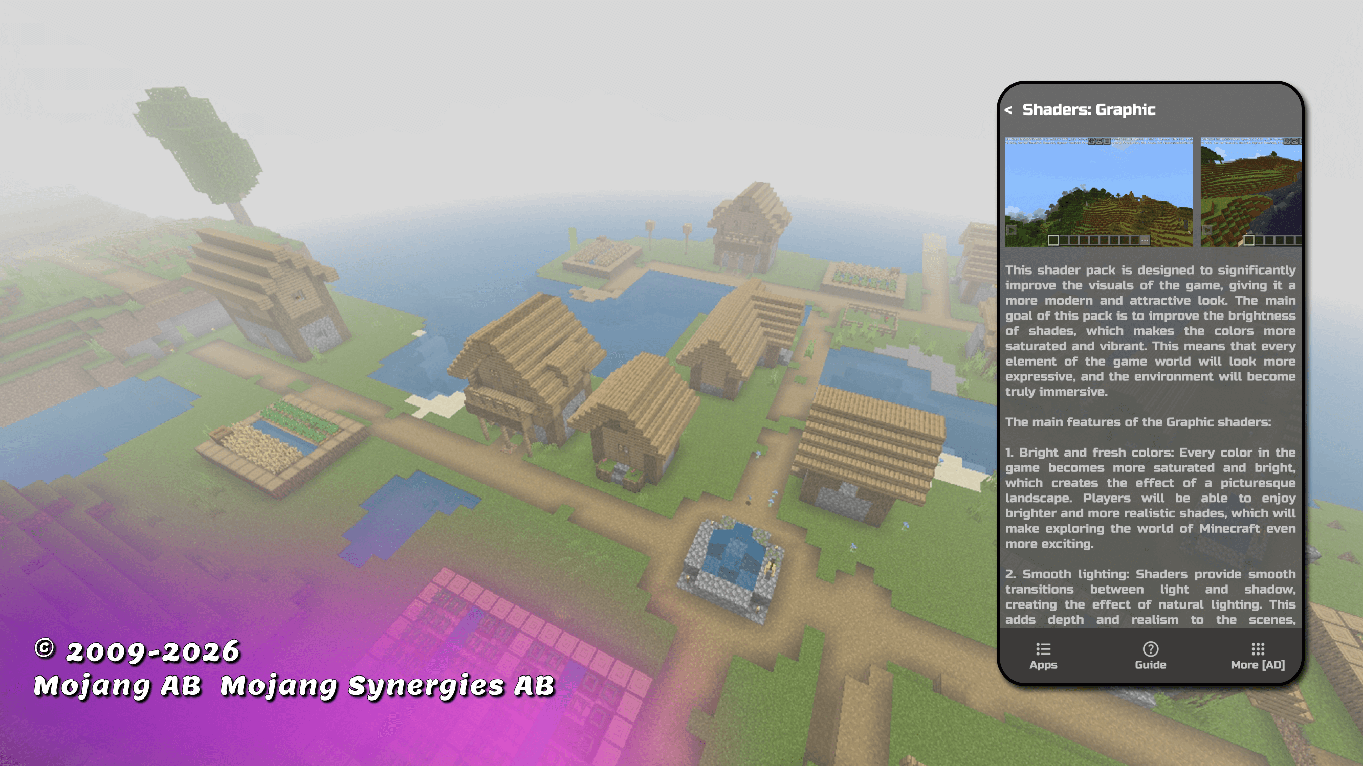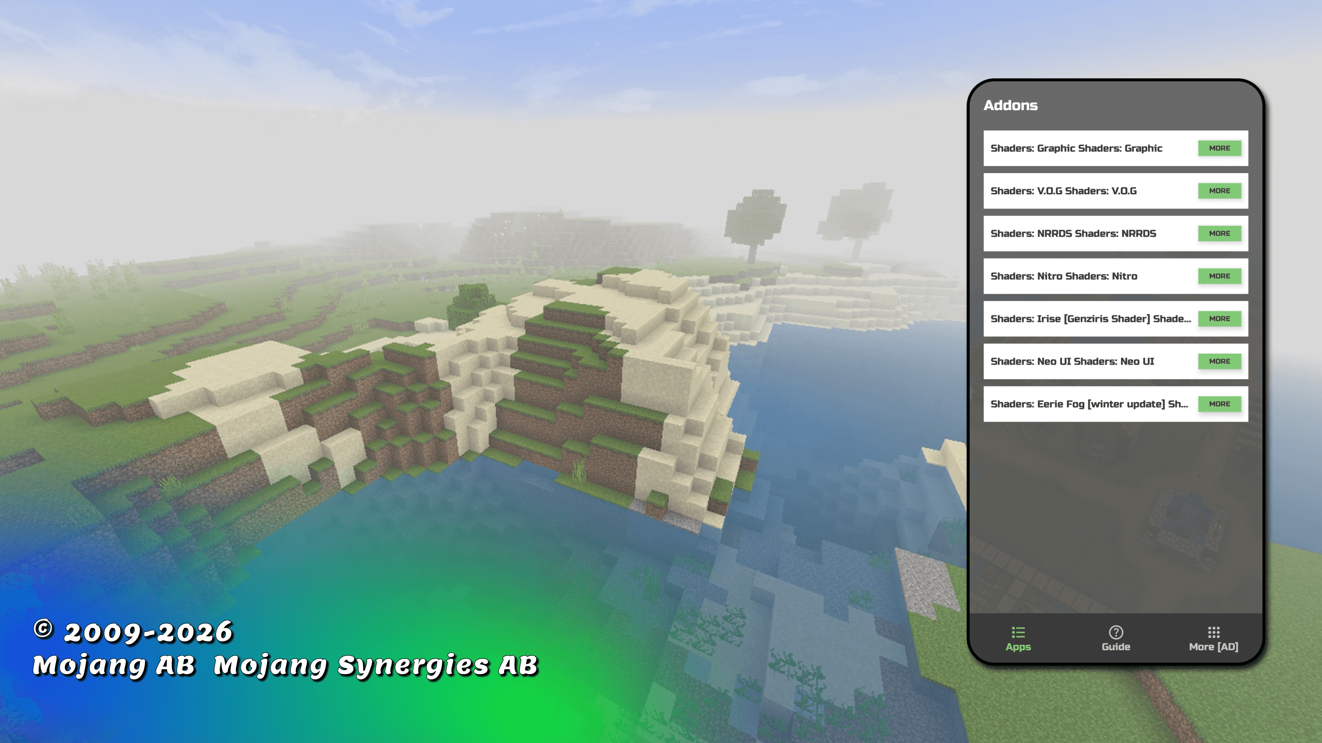 pl_appsからリリースされた『shaders for minecraft pe』はエンタメアプリだ。apkfab.com/jpから『shaders for minecraft pe』のファイルサイズ(APKサイズ):26.77 MB、スクリーンショット、詳細情報などを確認できる。apkfab.com/jpではpl_appsより配信したアプリを簡単に検索して見つけることができる。現在、shaders for minecraft pe appのダウンロードも基本プレイも無料だ。『shaders for minecraft pe』のAndroid要件はAndroid 8.0+なので、ご注意ください。APKFabあるいはGooglePlayから『shaders for minecraft pe apk』の最新バージョンを高速、安全にダウンロードできる。APKFab.com/jpでは全てのAPK/XAPKファイルがオリジナルなものなので、高速、安全にダウンロードできる。