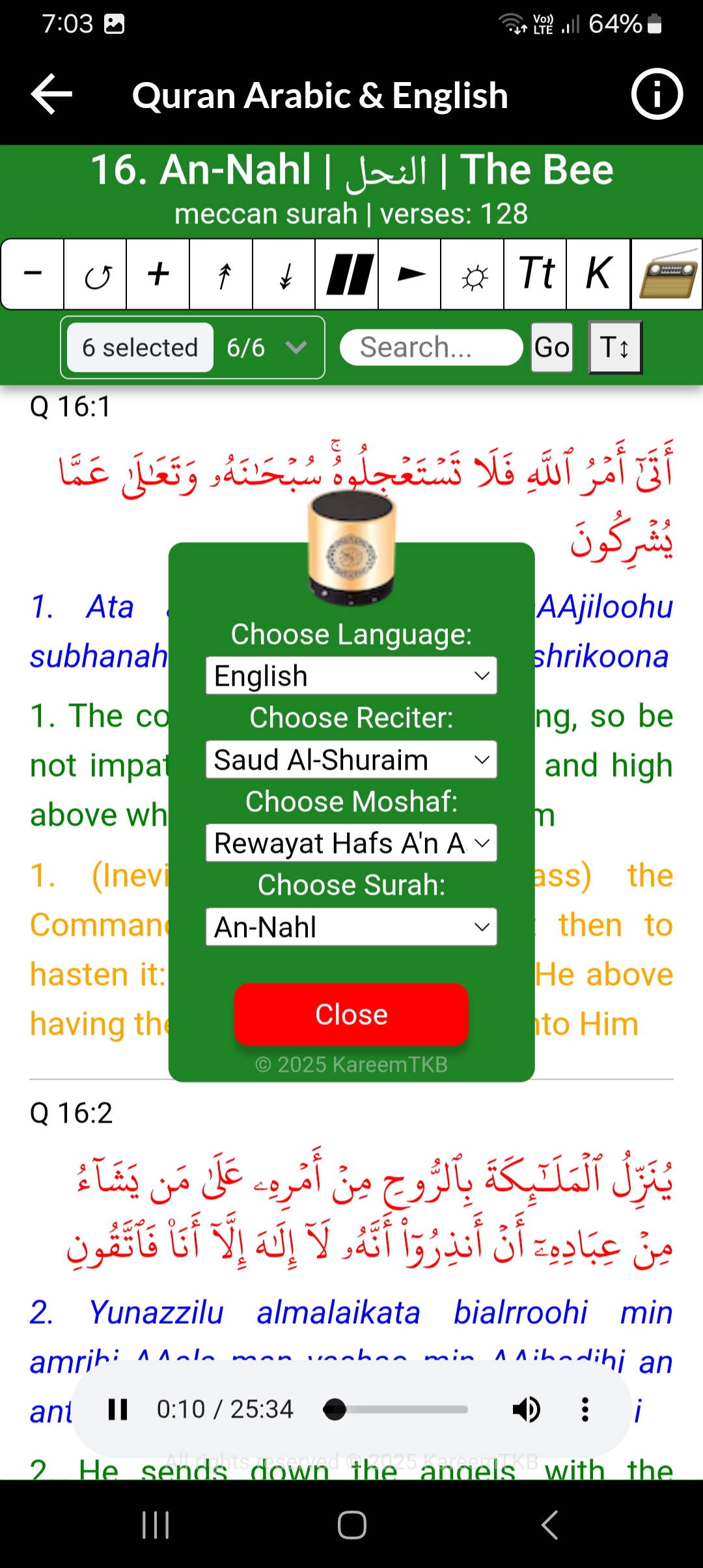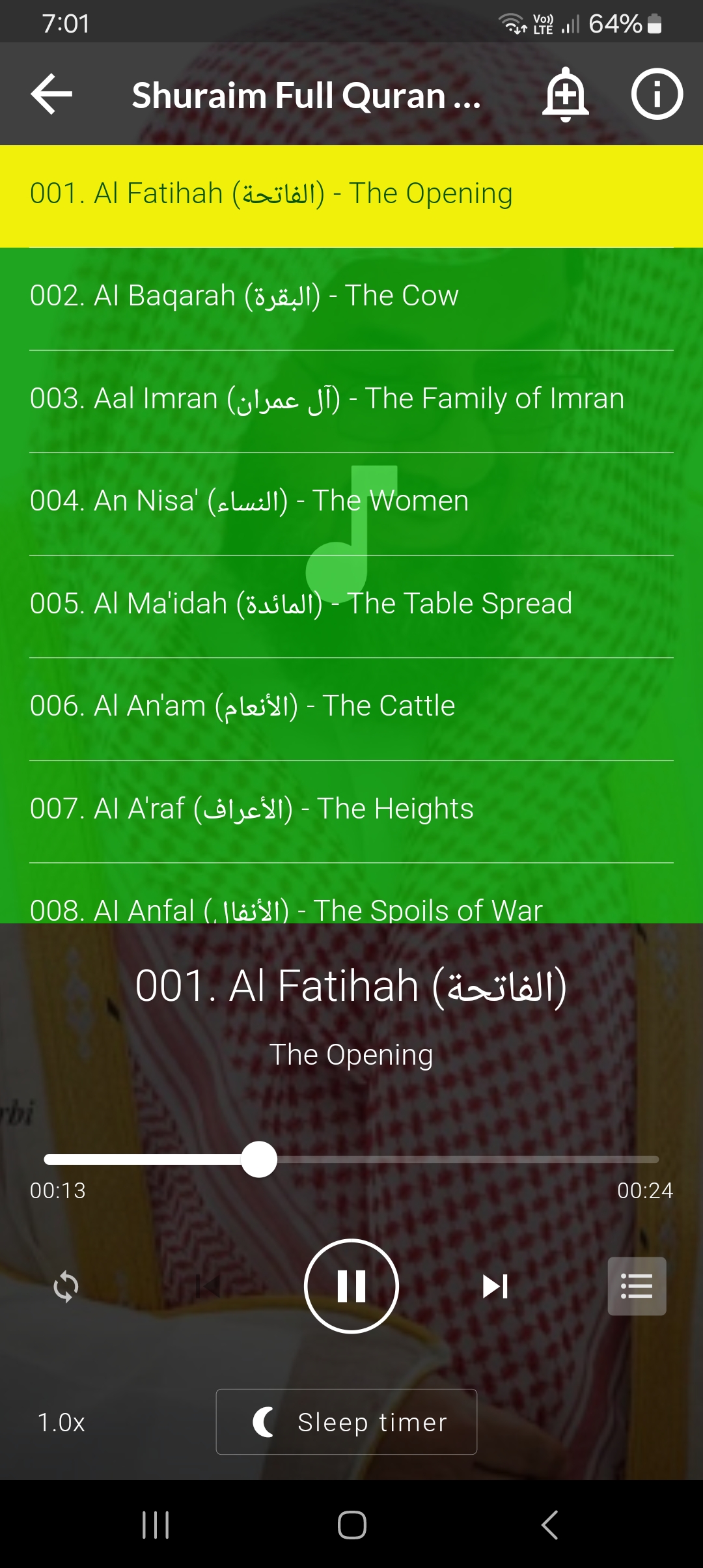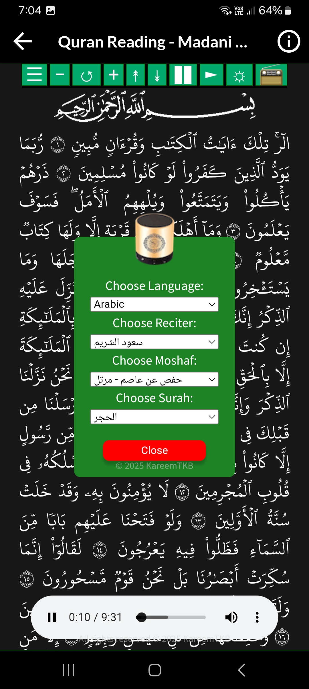 これはシェイク・シュライムによるコーラン全集(オフライン)です。ダウンロードして、シェイク・シュライムによるコーラン朗読全編を聴き始めましょう。このアプリを使えば、同じページでコーランを聴きながら読むことができます。アクティビティを切り替える必要はありません。 アプリの機能: 1. サウド・シュライムのコーラン全編をオフラインで聴く 2. シェイク・シュライムの美しい声でコーランをmp3でオフラインで読む 3. コーランのスーラの再生速度を変更 4. シュライムのコーラン全編音声をオフラインでスリープタイマーで再生 5. スーラを着信音、通知音、またはアラーム音に設定 6. シェイク・シュライムの伝記を読む 7. コーラン・マダニフォントでコーラン全編をオフラインで読む(自動スクロール機能付き) 8. インドパック文字でコーラン全編を自動スクロール 9. 完全英語で書かれたコーラン全編をオフラインで読む(mp3音声付き) サウド・イブン・イブラーヒーム・イブン・ムハンマド・アル・シュライム(アラビア語:سعود بن ابراهيم بن محمد الشريم、1966年1月19日生まれ)は、コーラン学者です。メッカのグランドモスク、マスジド・ハラームの礼拝指導者および金曜説教者の一人でした。また、メッカのウンム・アル・クラー大学でシャリーア(イスラム学)の博士号を取得しています。シュレイム氏は最近、同大学の学部長兼「フィクフ専門教授」に任命されました。 シュレイム氏は1991年からメッカでラマダン期間中のタラーウィーフの礼拝を主導していました。また、2012年6月17日には、マスジド・ハラームでマグリブ(日没)の礼拝の後、ナエフ・ビン・アブドゥルアズィーズ皇太子の葬儀の礼拝を主導しました。この葬儀には、サウジアラビアのアブドラ国王と王族が参列しました。 1991年、ファハド国王の命により、シェイク・シュレイム氏はグランドモスクの礼拝指導者および金曜説教者に任命されました。その1年後、彼はサウジアラビアの高等裁判所の判事に任命されました。サウド・アル=シュレイムは、メッカの聖マスジド・ハラームで教鞭をとることを承認され、1995年から同大学のウンム・アル=クラー大学で教授を務め、「シャリーアとイスラーム研究」学部長に任命されました。2010年6月、シュレイムは同大学のバクリ・ビン・マトゥーク学長によって教授からフィクフ専門教授に昇進しました。サウド・アル=シュレイムは現在引退しています。シュレイム・コーラン全音声オフライン シュレイムの家族は、サウジアラビアのバヌ・ザイド族のハラキー族です。 アル・ワタン紙のインタビューで、シュレイムは自身の成功における妻の役割について尋ねられると、次のように答えました。「妻について語る前に、幼少期、そして青年期にも母が示してくれた愛と慈悲を忘れることはできません。母は私を孤児院で育ててくれました…」愛は私にとって活力剤です。子供の頃に彼女が私にしてくれたように、アッラーが彼女にも慈悲を注いでくださいますように。shuraim quran full audio offline 。そして妻は、喜びの時も悲しみの時も私の最高の伴侶であることを証明してくれました。彼女は私が必要とする時にはいつもそばにいてくれ、私を励まし、私の悲しみを和らげようと最善を尽くしてくれます。アッラーが彼女の善行にこれを加えてくださいますように。shuraim quran full audio online 2022年12月、シュライムはマスジド・ハラームのイマームを退任しました。彼は自ら詩を詠み、その職に別れを告げました。 sheikh shuraim full quran offline READ and listen 以外にも、私のカタログには sheikh sudais full quran online、sheikh alminshawi quran online、sheikh Saad alghamidi、sheikh Maher almuaiqly、sheikh mishary rashid alafasy などのアプリがあります。など。これらの聖クルアーン朗唱者のいずれかを入手するには、私のカタログにあるアプリをご確認ください。 ご提案がございましたら、開発者メールアドレスまでメッセージをお送りください。このアプリをより良くし、シェイク・シュライムの思い出に残るクルアーンをオフラインでもデバイスでお楽しみいただけるよう、ご意見をお聞かせください。