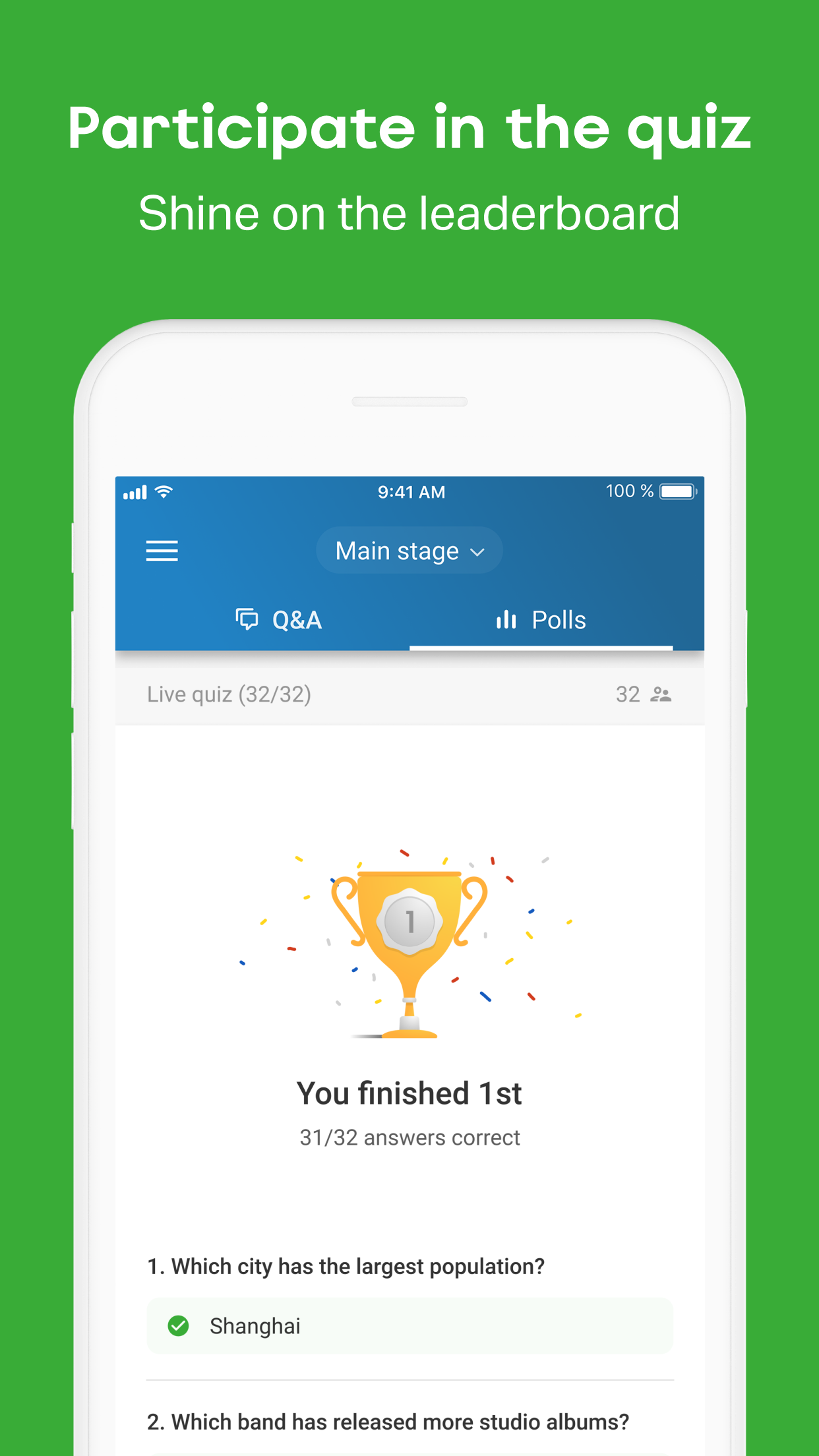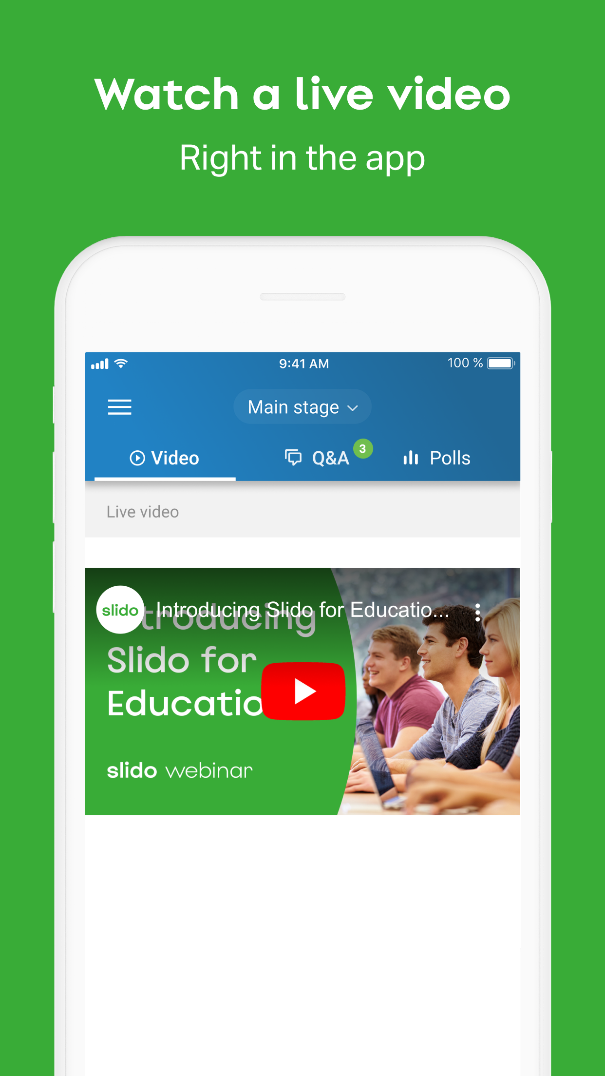 アプリから直接、ライブストリームを視聴し、ライブ投票や視聴者のQ&Aを操作できます。