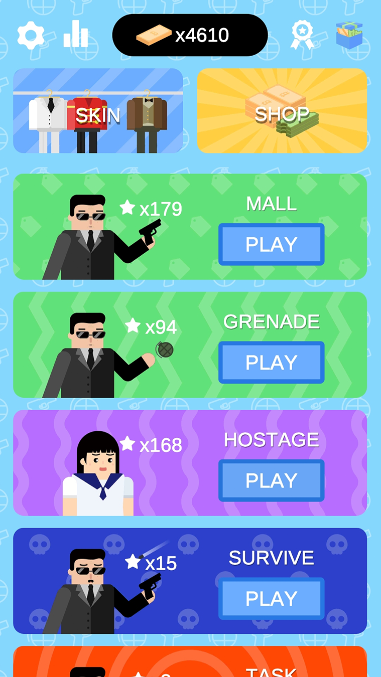🔫武器を使用して、さまざまな障害物を通して敵を撃ち、究極の勝利のために必死に弾丸を撃ちます。