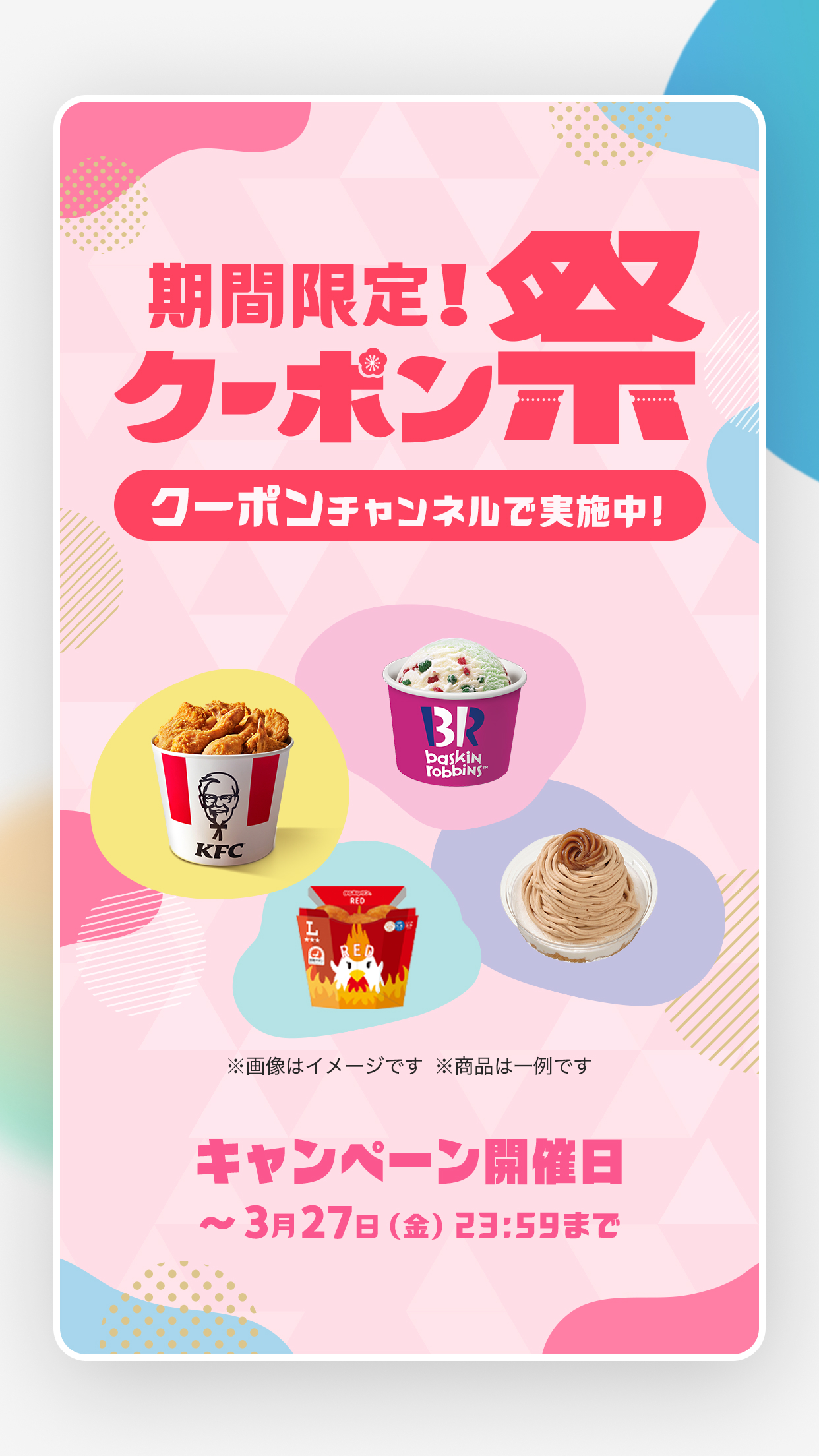 ・「クーポン」チャンネルでは、全国4万店舗以上で使えるお得なクーポンを毎日配信。また、クーポンが使える近くのお店を地図アプリから探すことが可能です。