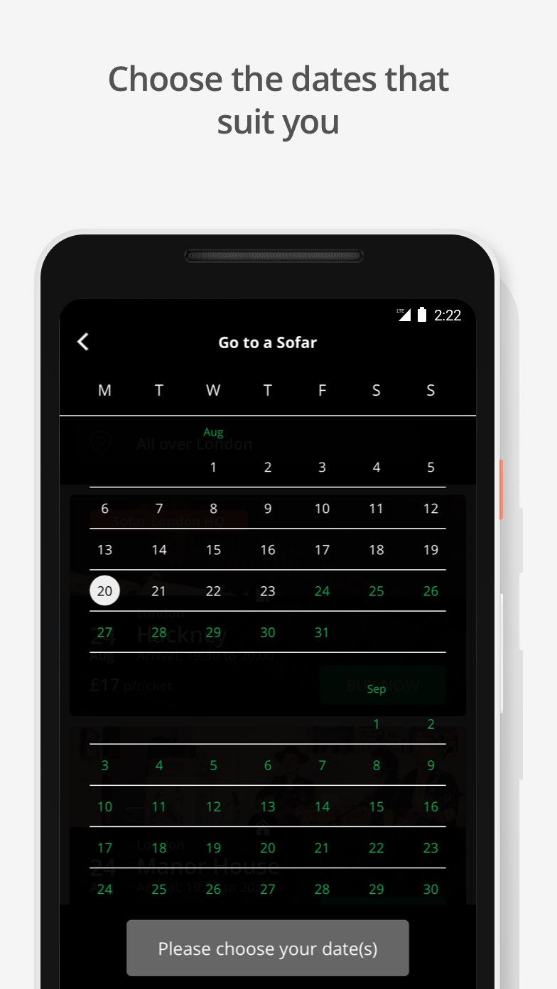 Founded in London in 2009, Sofar Sounds brings guests and artists together in secret locations, without the distractions that plague other live events. Through the transformation of unique spaces into captivating venues, Sofar serves as a platform for artists to connect with engaged audiences in cities around the world. Now with our app, you can rediscover the magic of live music events in a respectful atmosphere where it’s all about the performance.