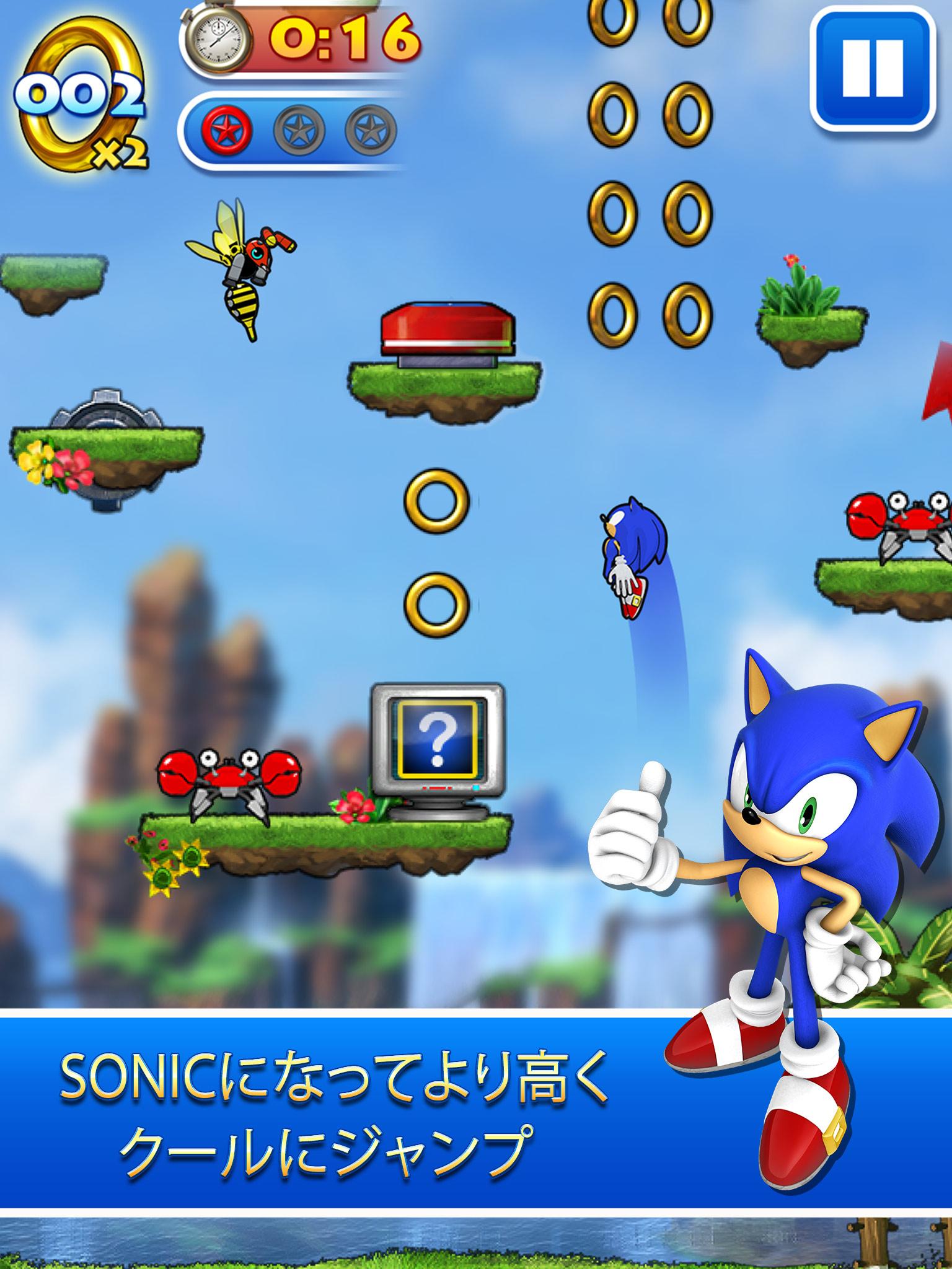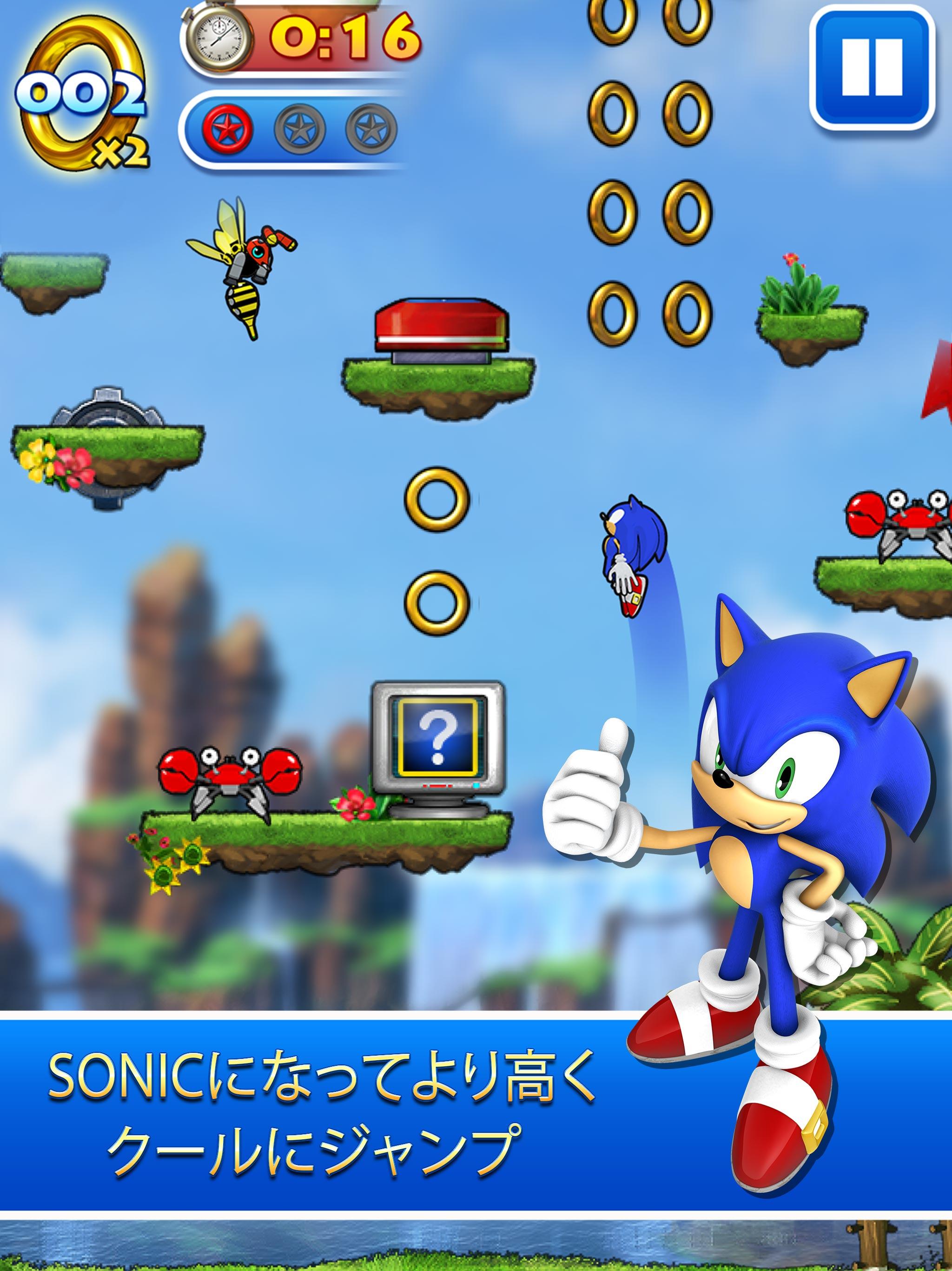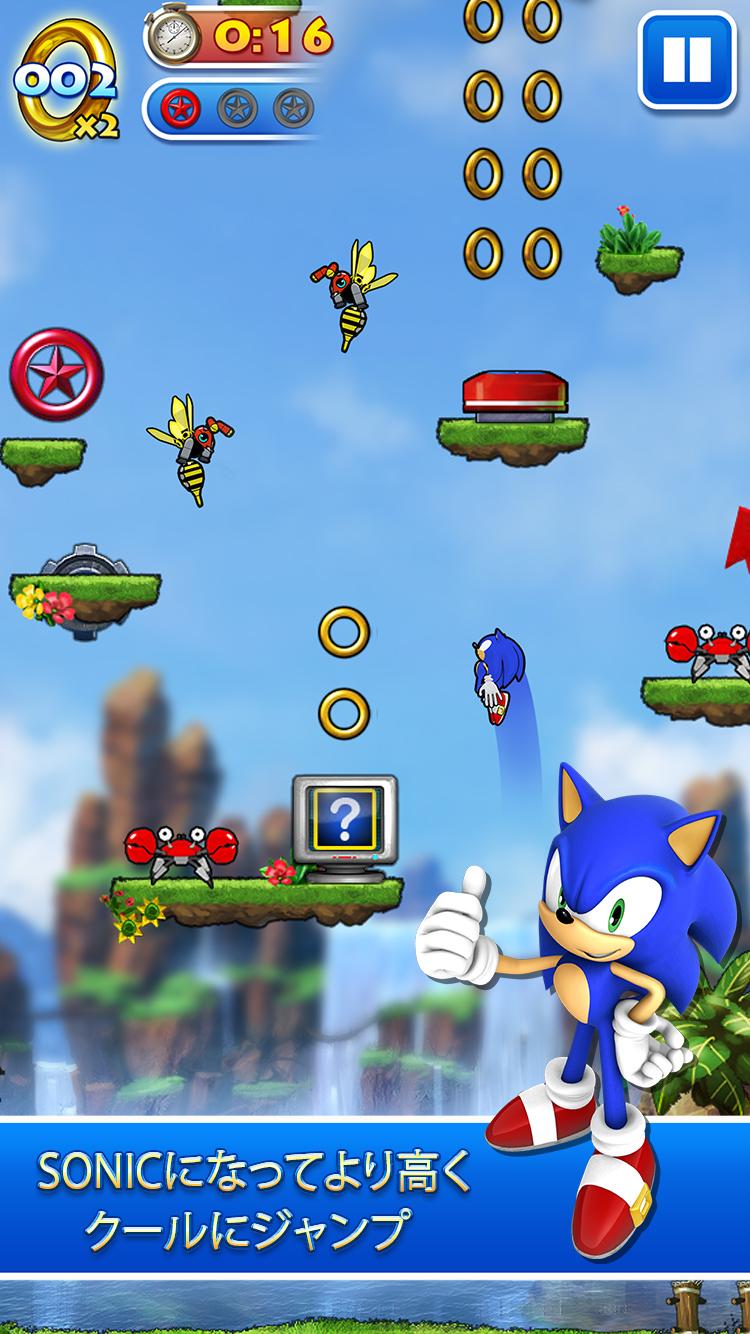 【重要】サービス終了のお知らせ 平素より『ソニックジャンプ』をご利用いただきありがとうございます。 この度『ソニックジャンプ』は 2018年6月5日をもちまして配信を終了させていただく事となりました。これまでのご愛顧に厚く御礼申し上げます。 配信終了まで残り短い期間ではございますが『ソニックジャンプ』をお楽しみください。 かんたん操作でクールにジャンプ! 高みを目指してとび出そう!! ソニックや彼の仲間たちと共におなじみのソニックワールドや、更に新しく追加されたクラシックソニックステージワールドを冒険し、Dr.エッグマンの野望を阻止しよう! 端末を傾けて画面をタップするだけ!かんたん操作のジャンプアクション!ストーリーモードでDr.エッグマンの野望を打ち砕き、無限に続くアーケードモードではさらなる高みを目指し、世界中の友達とハイスコアを競い合おう! ソニックと頼れる仲間たち ソニック、テイルス、ナックルズ、エミー、ルージュ、シルバー、ブレイズの中から好きな仲間を選んで遊ぼう! 各キャラごとにいろいろなスキルを使えるよ 多彩なワールド おなじみの爽快ステージ、グリーンヒルゾーンをプレイしよう ほかにも、マウンテン、ジャングル、ブルースカイ、メカニカルゾーンなど、新たに追加された、魅力的なステージが盛りだくさん! ストーリーモードとアーケードモードの、2つのモードをプレイできるぞ。 ストーリーモードでは48もの多彩なステージをクリアして進み、Dr.エッグマンの悪の野望を阻止しよう!アーケードモードでは無限ゾーンに挑戦!ミスしないでどこまで跳べるか!? 究極の高みを目指そう。 楽しいチャレンジとクエスト それぞれのステージをハイスピードでクリアして、でっかく稼ごう。 ストーリーモードでもアーケードモードでも、スペシャルミッションをクリアすれば、スペシャルな報酬がもらえるぞ!ぜひともチャレンジしよう! 豊富なアイテムとアンロック要素 ゲーム中のリングを集めてストアでお買い物!プレイに役立つ便利なアイテムや、クールな壁紙を入手できるぞ!ゲームを進めることで、新たなアイテムがアンロックされることも!? 世界レベルに挑戦 アーケードモードで、誰が一番高く飛べるのか? 国際ランキングでハイスコアを叩き出すのは誰だ?? 世界中のユーザーと競い合おう。 カスタマーレビュー 評価スコア:4点中4点満点 「昔からソニックをプレーして育った世代でもそうでない世代でも、ソニックジャンプの面白さにはブッ飛ばされます」 - Slide to Play 評価スコア:5点中4点 「ストーリーモードと各ミッションが最強に面白過ぎて、もっと高くジャンプしたい!…ってやっていると終わるタイミングが見つかりません」 - Digital Spy 評価スコア:10点中8点 「ソニックジャンプは楽しめる逸品。いい意味で期待を裏切られたね。」 - App Gamer 評価スコア:5点中4点 「セガはソニックジャンプに新しいゲームとしての命を吹き込んだね。これは元々ソニック・ザ・ヘッジホッグのファンだった人も、そうじゃ無かった人も全員巻き込む最強のゲーム」 - TouchGen ※※NVIDIA Tegra3搭載端末をご使用のお客様へ※※ 上記プロセッサを搭載している一部の端末にて、ゲームの描画表現が崩れる現象を確認しております。 発見次第非対応端末とさせて頂いておりますが、ご購入後に現象を確認されたお客様におきましては、 下記のお問い合わせ窓口までご連絡をお願い致します。 https://help.sega.net/ 件名に「ソニックジャンプ」を添えていただきますようお願い致します。 - - - - - Privacy Policy: https://privacy.sega.com/en/soa-pp Terms of Use: https://www.sega.com/EULA SEGA, the SEGA logo, SONIC THE HEDGEHOG and SONIC JUMP are either registered trade marks or trade marks of SEGA CORPORATION. or its affiliates. All rights reserved.
