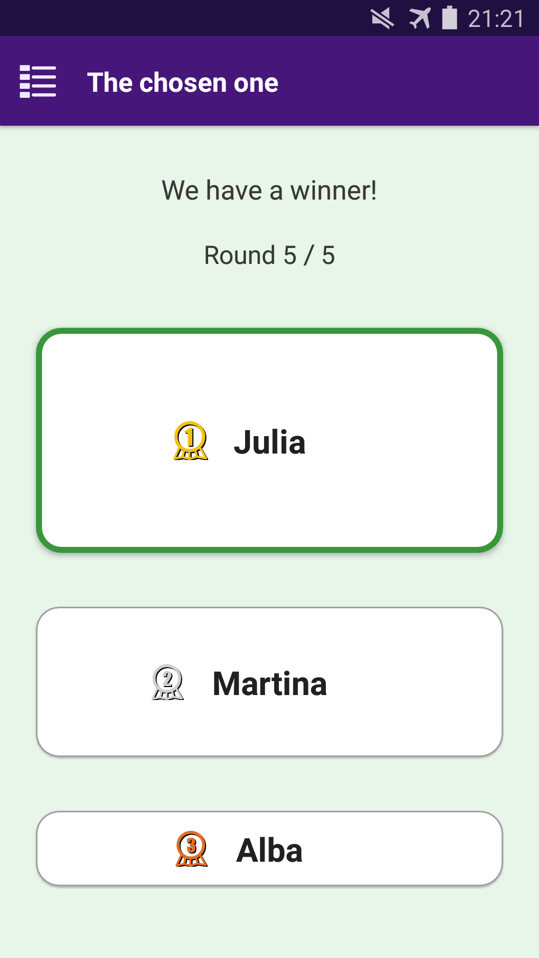 Classify the names in multiple lists of your choosing, then share them with your partner. The app includes a minigame to help you choose the best name from among all your favorites!