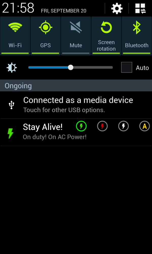 通知アイコンで簡単電力動作モードの変更!それはあなたが使用している電力モードをお見せして、すぐにモードを切り替えることができます。また、すばやく特定のアプリケーションモードに滞在アライブを有効にすることができます!