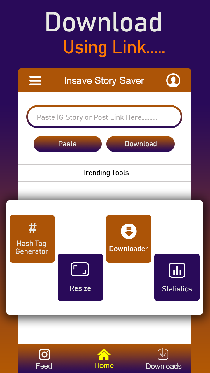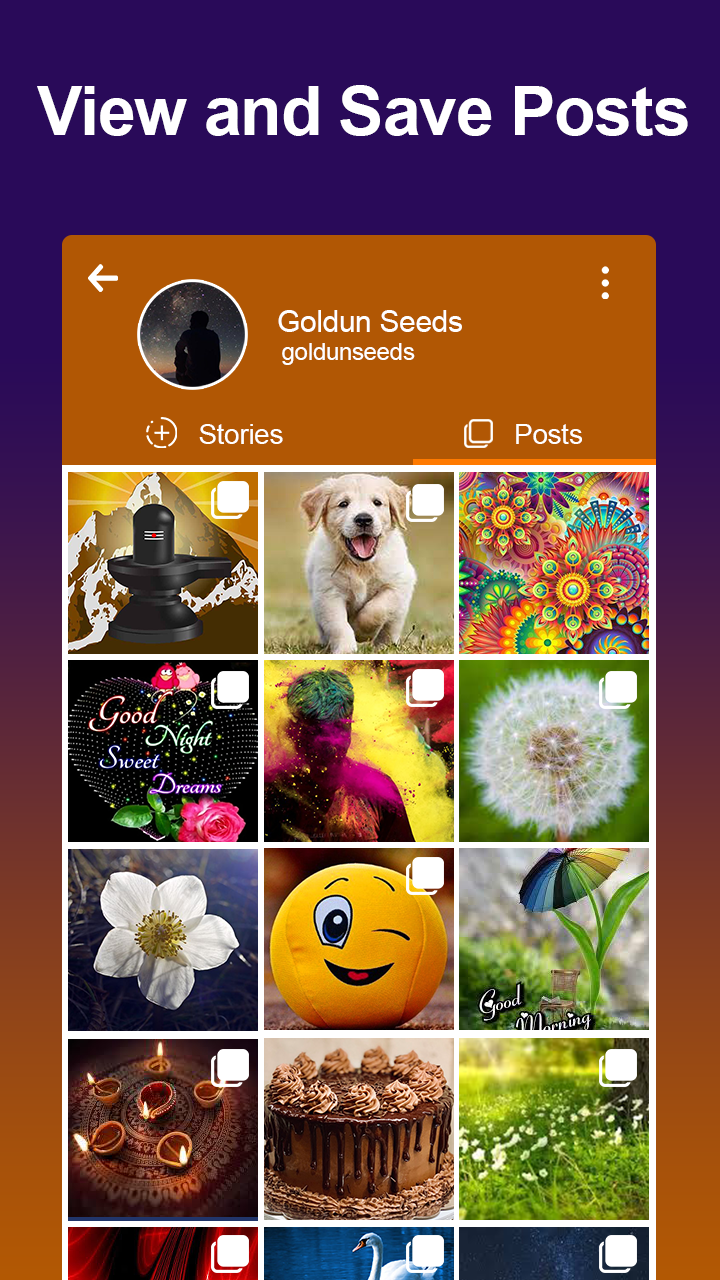 #No.1 app to download high-quality (HD, SD) videos, photos, Stories from your Istagram feed, your Istagram profile and public Istagram users. Why this Story Saver for Istagram is special ? Unlike other apps, You don't need to copy paste URL of media. This app very user friendly app. Just select media then click on download button. You can download multiple Videos, photos, Stories at single click. All in one app: ★ Story Saver for Istagram ★ Photo downloader for Istagram ★ Video Downloader for Istagram ★ Story Saver for Facebuk ★ Photo downloader for Facebuk ★ Video Downloader for Facebuk ★ Status savers for WhotsApp ★ All status downloader Features of Story Saver for Istagram App : → Save story from Facebuk → Video downloader from Facebuk → Save story from istagram → Video downloader for istagram → Download multiple videos at the same time. → Play downloaded videos offline. → Supports powerful video downloads manager to play, pause, resume. → Delete downloaded videos. → Share your downloaded videos. How to use video downloader for Istagram: 1. Login with your Istagram account 2. Browse your favorite videos, photos, Stories from your Istagram. 3. then click on download button. 4. Get all downloaded media in single screen. NOTE: All trademarks and copyright protected to the respective owners. Content compiled from various internet sources. DISCLAIMER: All copyright and trademarks are owned by their respective owners. The images in this app are collected from around the web, if we are in breach of copyright, please let us know and it will be removed as soon as possible.