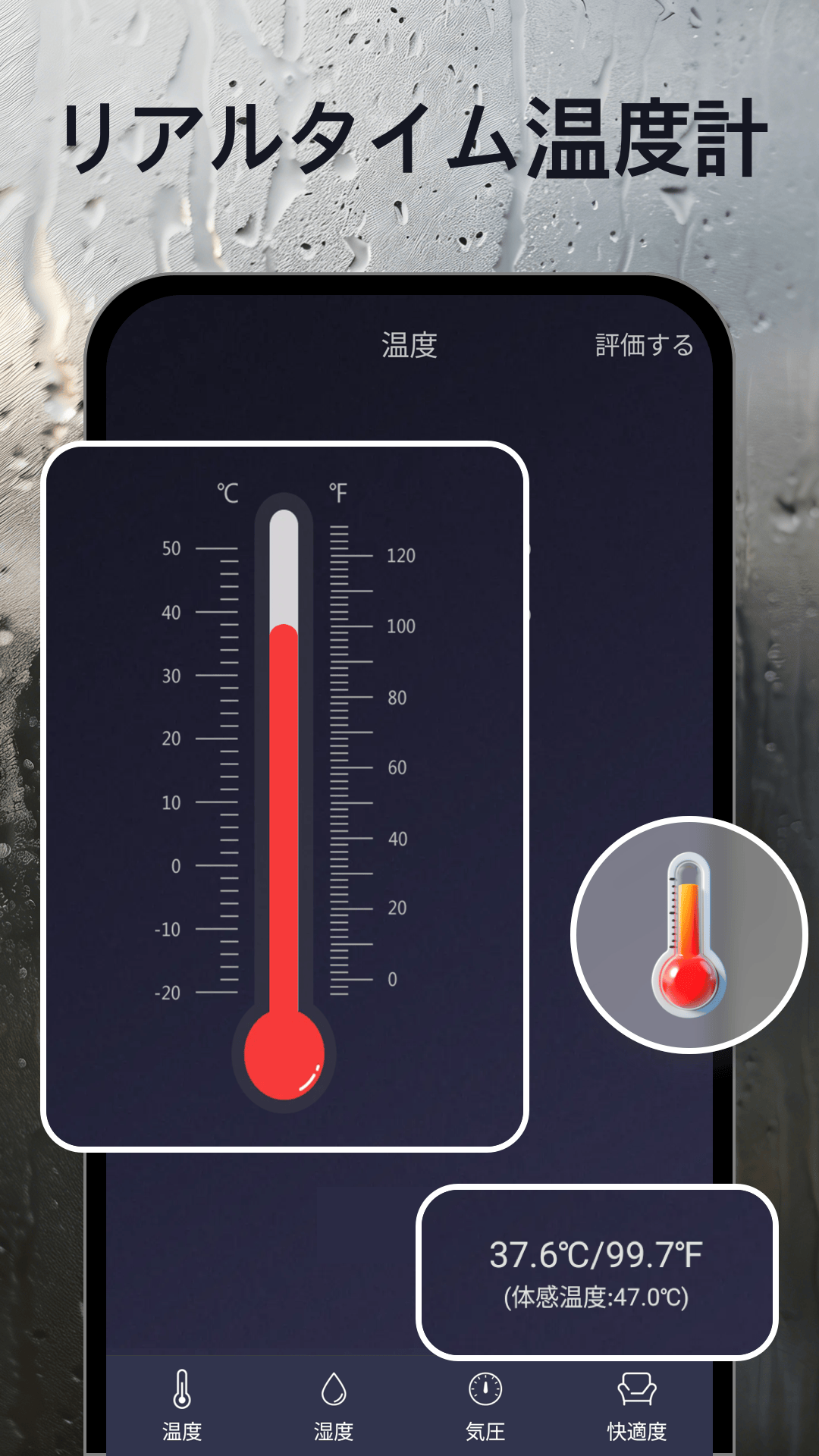 リアルタイム温度計, 湿度計 & 気圧計 - 正確な気象情報