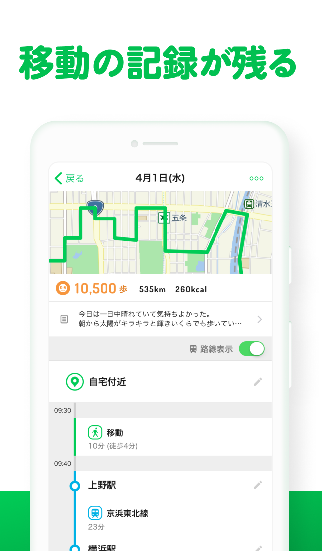 歩いて、消費カロリーや運動量をしっかり測定する、健康管理に役立つアプリを紹介しています。