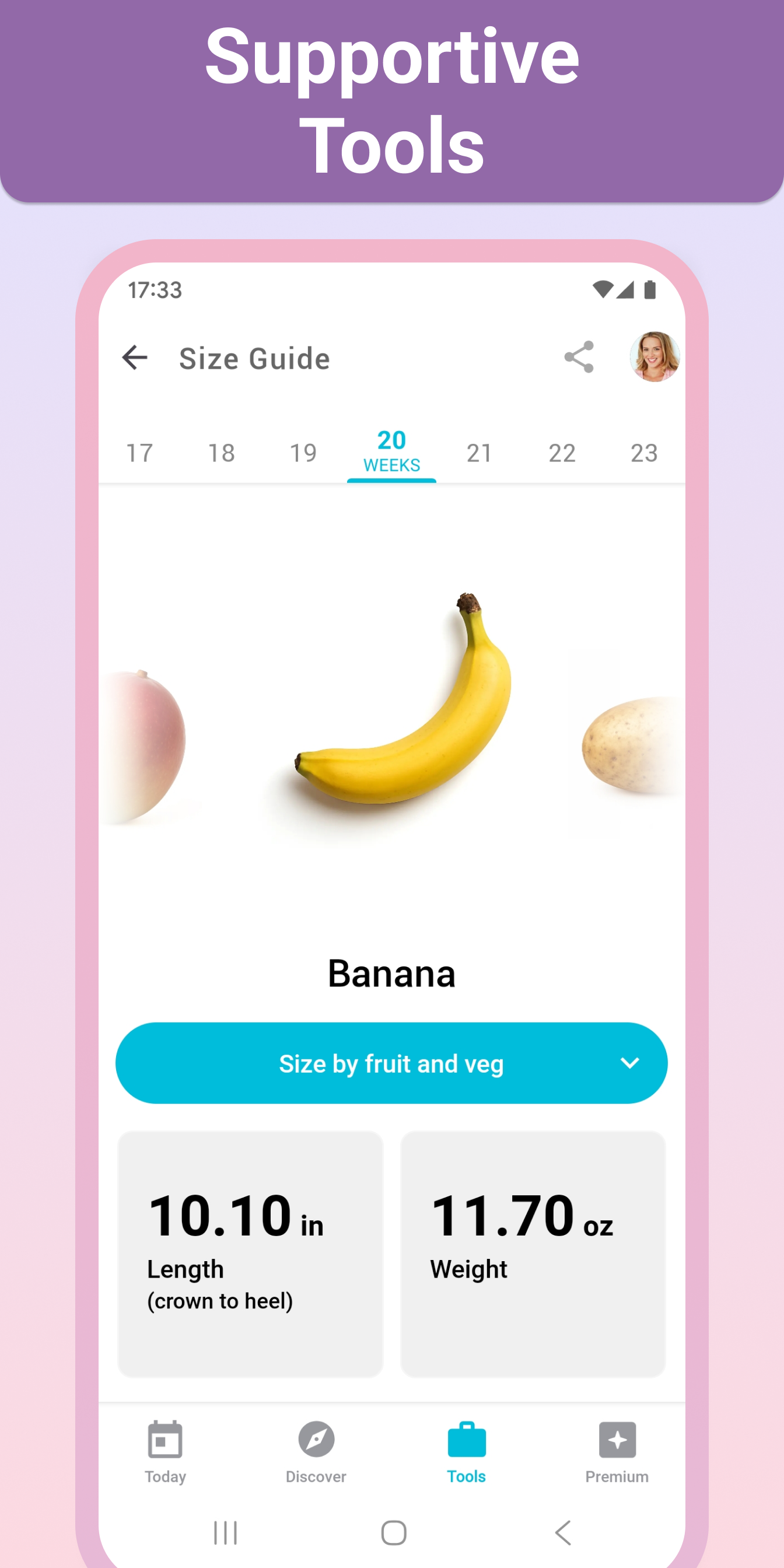 3. イラストの胎児が大きくなる。赤ちゃんの成長を実感することが可能